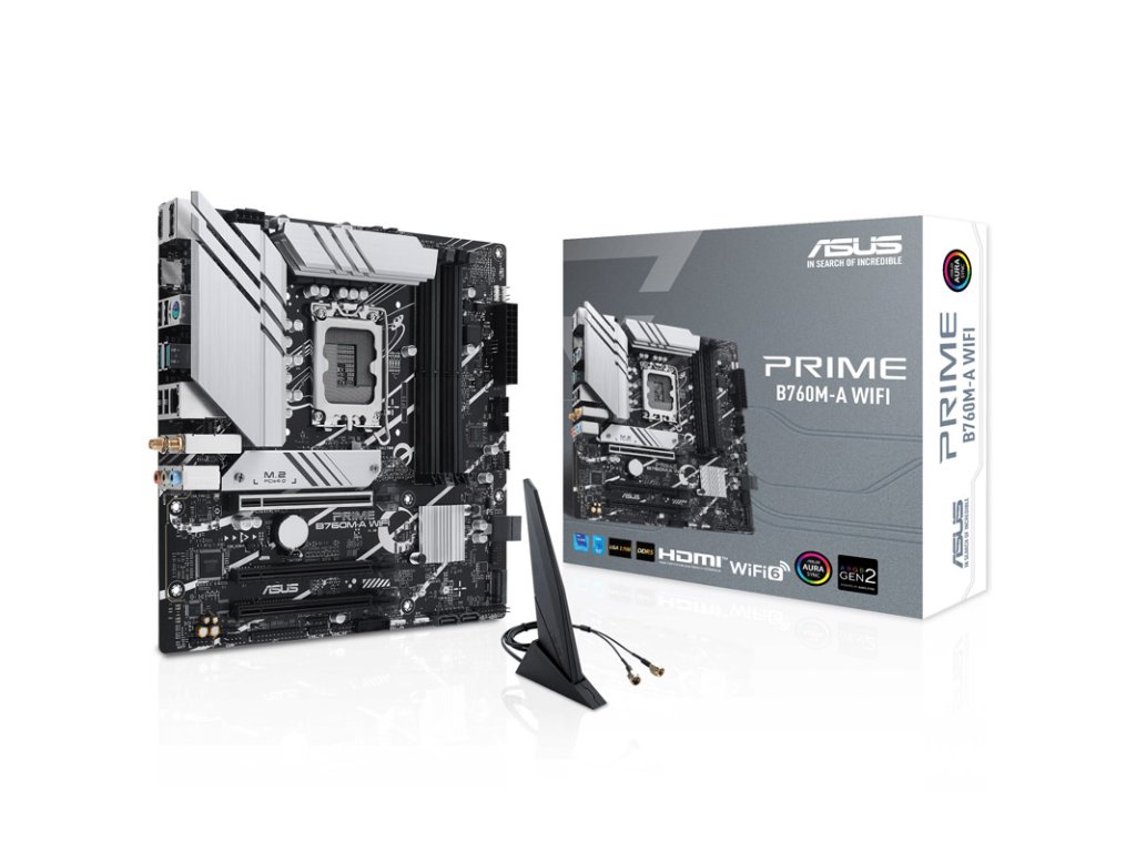 StránkaASUS Prime B760M-A WIFI je základná doska formátu Micro-ATX sČipová súprava Intel B760 aSocket LGA 1700. Základná doska je vhodná pre stolové procesory 12., 13. a 14. generácie procesorov Intel Core,Kódové označenie: Alder Lake a Raptor Lake. PodporujePamäť DDR5 s frekvenciou až 7 200 MHz a vďaka vynikajúcemu napájaniu je ideálny na pretaktovanie pamäte RAM. Poznámka: Táto základná doska podporuje pamäť so štandardom DDR5. Základné dosky so socketom 1700 s kompatibilitou s DDR4 nájdete pod nasledujúcim odkazom: Na dosiahnutie čo najlepšieho výkonu procesora sa odporúča pravidelne aktualizovať BIOS základnej dosky. To sa týka najmä základných dosiek, ktoré mohli byť výrobcom dodané so skoršou verziou systému BIOS.