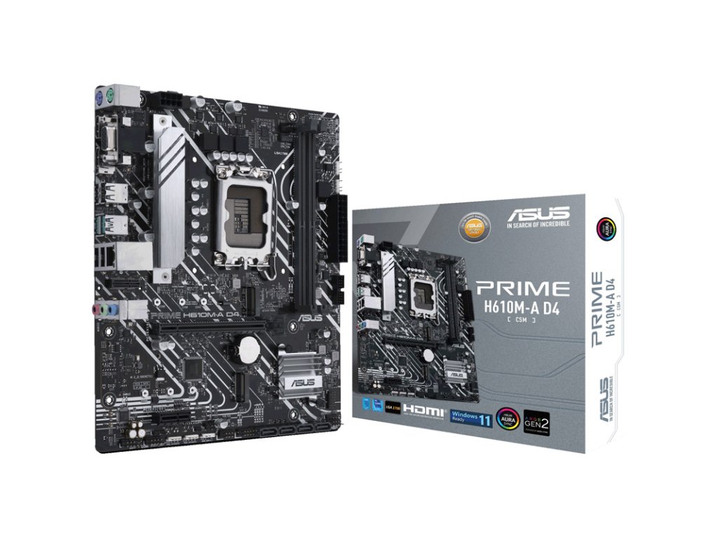 StránkaASUS Prime H610M-A D4-CSM je základná doska formátu Micro-ATX sČipová súprava Intel H610 aSocket LGA 1700. Základná doska je vhodná pre stolové procesory 12., 13. a 14. generácie procesorov Intel Core,Jazero Alder a jazero Raptor. PodporujePamäť DDR4 s frekvenciou až 3 200 MHz a ponúka aj funkcie, ako sú tepelné rozptyľovače pre VRM a čipovú súpravu a Gbit LAN. v prípade potreby rozbaľte text jednotlivo Poznámka: Táto základná doska podporuje pamäť so štandardom DDR4. Základné dosky so socketom 1700 s kompatibilitou s DDR5 nájdete pod nasledujúcim odkazom: Na dosiahnutie čo najlepšieho výkonu procesora sa odporúča pravidelne aktualizovať BIOS základnej dosky. To sa týka najmä základných dosiek, ktoré mohli byť výrobcom dodané so skoršou verziou systému BIOS.
