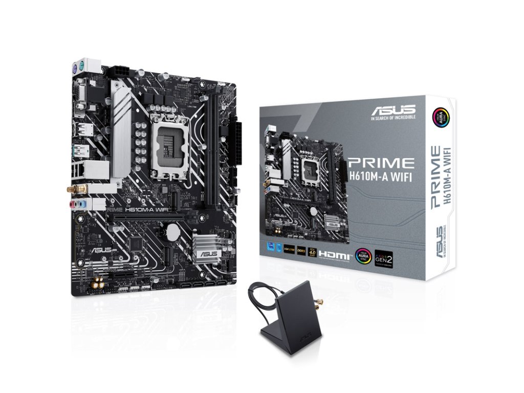 StránkaASUS Prime H610M-A WIFI je základná doska formátu Micro-ATX a je vybavenáSlot PCI Express 4.0 s plným pripojením x16 pre grafické karty. So socketom LGA 1700 ste ideálne vybavení pre výkonné procesory od spoločnosti Intel. Okrem tohoASUS Prime H610M-A WIFI Pamäť DDR5 s frekvenciou až 5 600 MHz pri použití OC.