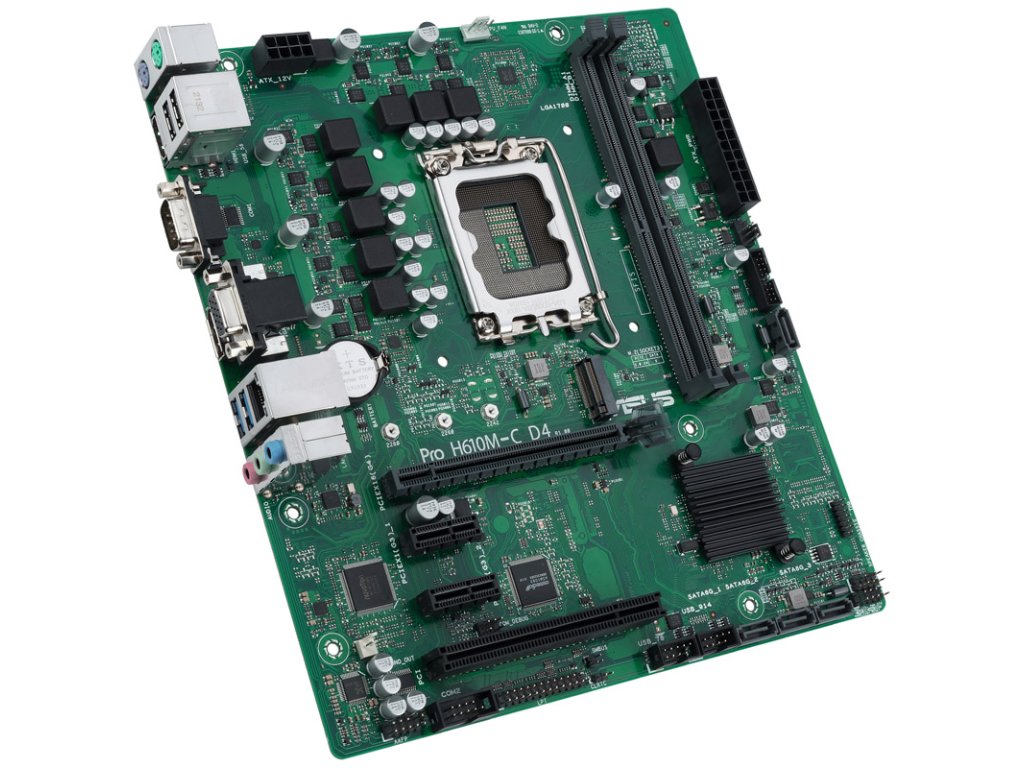 StránkaASUS PRO H610M-C D4-CSM je základná doska formátu Micro-ATX sČipová súprava Intel H610 aSocket LGA 1700. Základná doska je vhodná pre stolové procesory 12., 13. a 14. generácie procesorov Intel Core,Jazero Alder a jazero Raptor. PodporujePamäť DDR4 s frekvenciou až 3 200 MHz a ponúka aj funkcie ako Gbit-LAN.