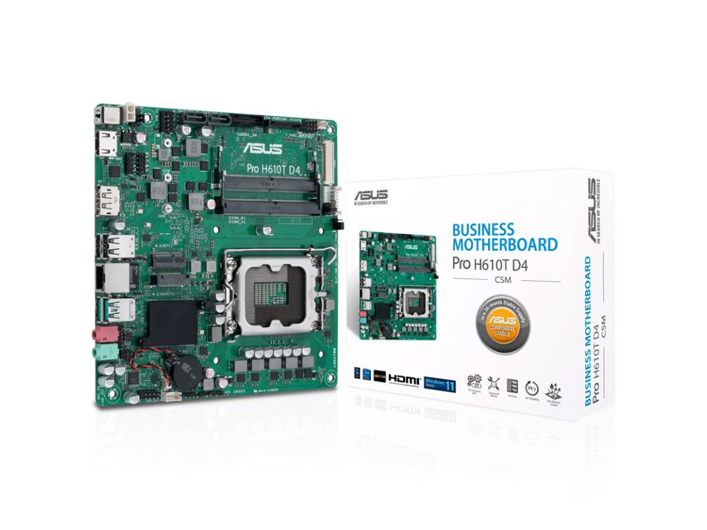 Tenká základná doska ASUS Pro H610T D4-CSM formátu mini-ITX s čipovou sadou Intel H610
