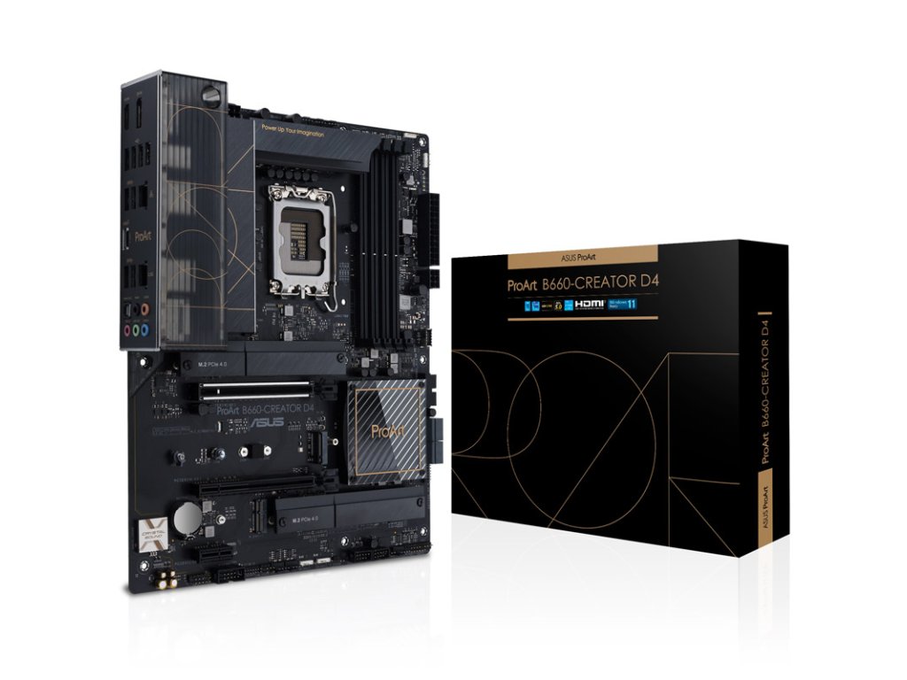 StránkaASUS ProART B660-Creator D4 je základná doska ATX sČipová súprava Intel B660 aSocket LGA 1700. Základná doska je vhodná pre stolové procesory 12., 13. a 14. generácie procesorov Intel Core,Jazero Alder a jazero Raptor. PodporujePamäť DDR4 s frekvenciou až 5 333 MHz a ponúka aj funkcie ako 2,5 Gbit LAN. v prípade potreby rozbaľte text jednotlivo Poznámka: Táto základná doska podporuje pamäť so štandardom DDR4. Základné dosky so socketom 1700 s kompatibilitou s DDR5 nájdete pod nasledujúcim odkazom: Na dosiahnutie čo najlepšieho výkonu procesora sa odporúča pravidelne aktualizovať BIOS základnej dosky. To sa týka najmä základných dosiek, ktoré mohli byť výrobcom dodané so skoršou verziou systému BIOS.