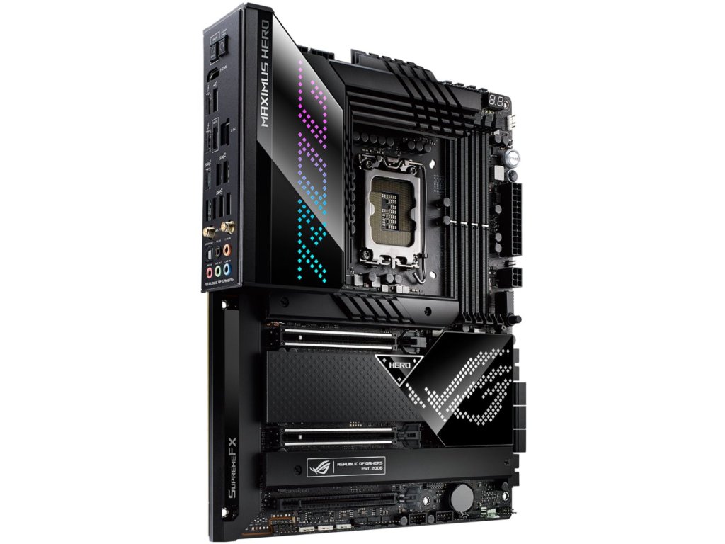 Základní deska ASUS ROG MAXIMUS Z690 HERO představuje ideální jádro pro stavbu moderního PC systému. Podpora procesorů 12. generace Intel, čtveřice slotů pro operační paměť DDR5 a špičkové provedení jsou základem pro zvládnutí každé pracovní výzvy a náročného procesu.
