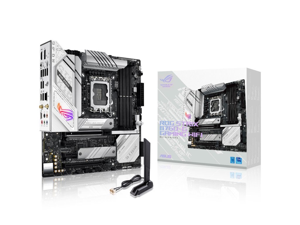 StránkaASUS ROG Strix B760-G Gaming WIFI D4 je základná doska m-ATX sČipová súprava Intel B760-G aSocket LGA 1700. Základná doska je vhodná pre stolové procesory 12. a 13. generácie Intel Core,Kódové označenie: Alder Lake a Raptor Lake. PodporujePamäť DDR5 s frekvenciou až 4800 MHz a vďaka vynikajúcemu napájaniu je ideálny na pretaktovanie pamäte RAM.
