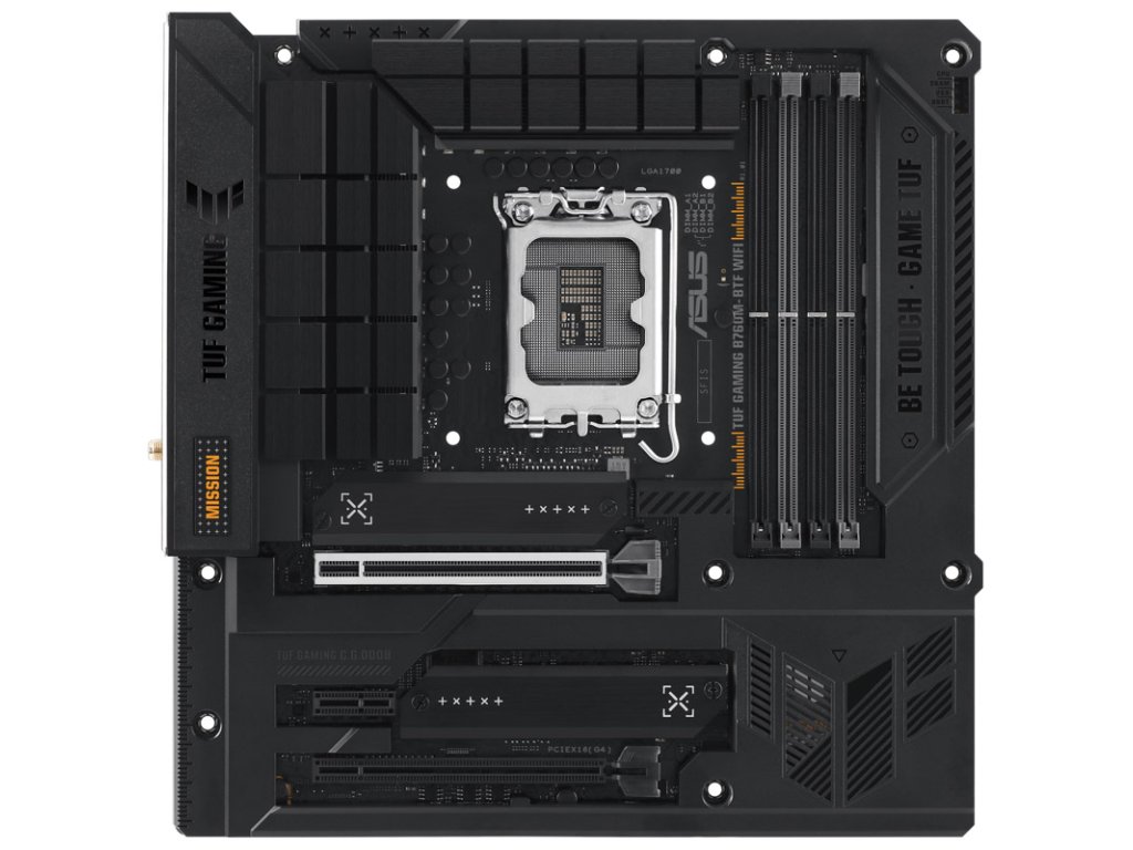 TUF GAMING B760M-BTF WIFI využíva všetky základné prvky najnovších procesorov Intel a kombinuje ich s hernými funkciami a osvedčenou odolnosťou. "BTF" znamená "Back To (the) Future" a znamená novú éru pre všetkých hráčov počítačových hier typu "urob si sám". Séria BTF skrýva všetky konektory na zadnej strane základnej dosky, aby zabezpečila čistú správu káblov a minimalistický vzhľad. Rozloženie si vyžaduje špeciálne usporiadanie zásobníka základnej dosky.