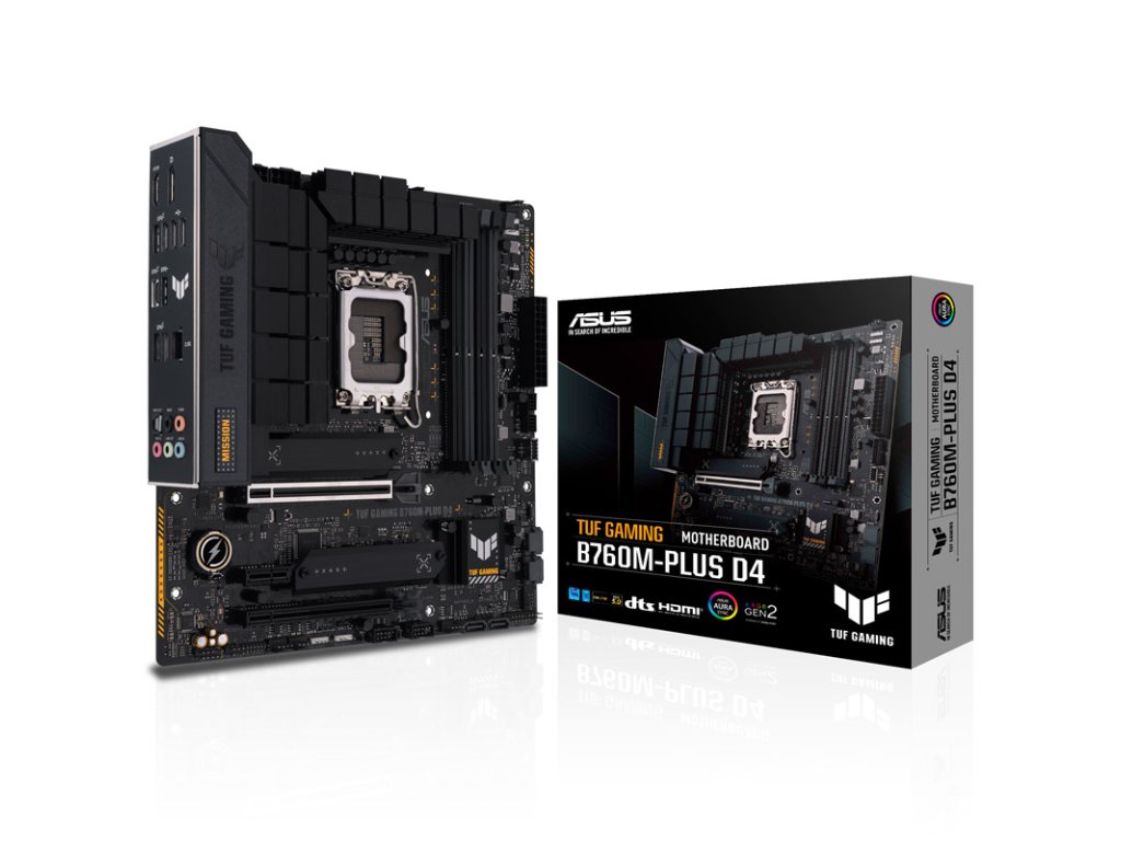 StránkaASUS TUF Gaming B760M-Plus WiFi D4 je základná doska formátu Micro-ATX sČipová súprava Intel B760 aSocket LGA 1700. Základná doska je vhodná pre stolové procesory 12., 13. a 14. generácie procesorov Intel Core,Kódové označenie: Alder Lake a Raptor Lake. PodporujePamäť DDR4 s frekvenciou až 5 066 MHz a vďaka vynikajúcemu napájaniu je ideálny na pretaktovanie pamäte RAM. Poznámka: Táto základná doska podporuje pamäť so štandardom DDR4. Základné dosky so socketom 1700 s kompatibilitou s DDR5 nájdete pod nasledujúcim odkazom: Na dosiahnutie čo najlepšieho výkonu procesora sa odporúča pravidelne aktualizovať BIOS základnej dosky. To sa týka najmä základných dosiek, ktoré mohli byť výrobcom dodané so skoršou verziou systému BIOS.