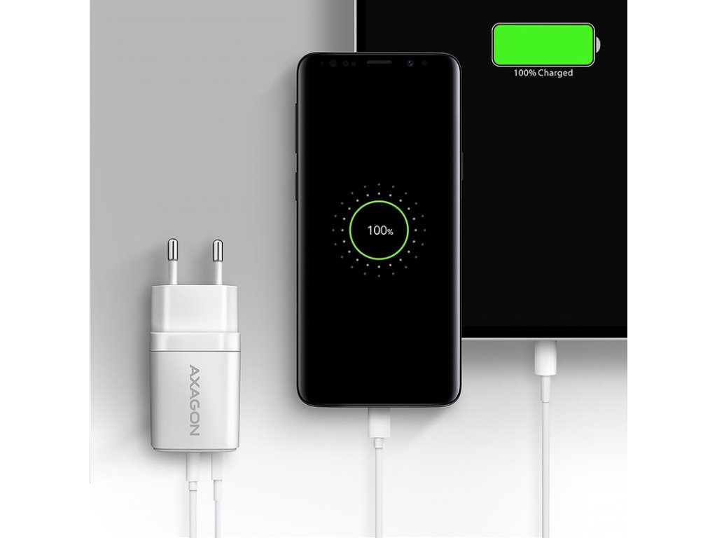 AXAGON ACU-PQ20W nástenná nabíjačka QC3.0/AFC/FCP + PD typ-C, 20 W - biela