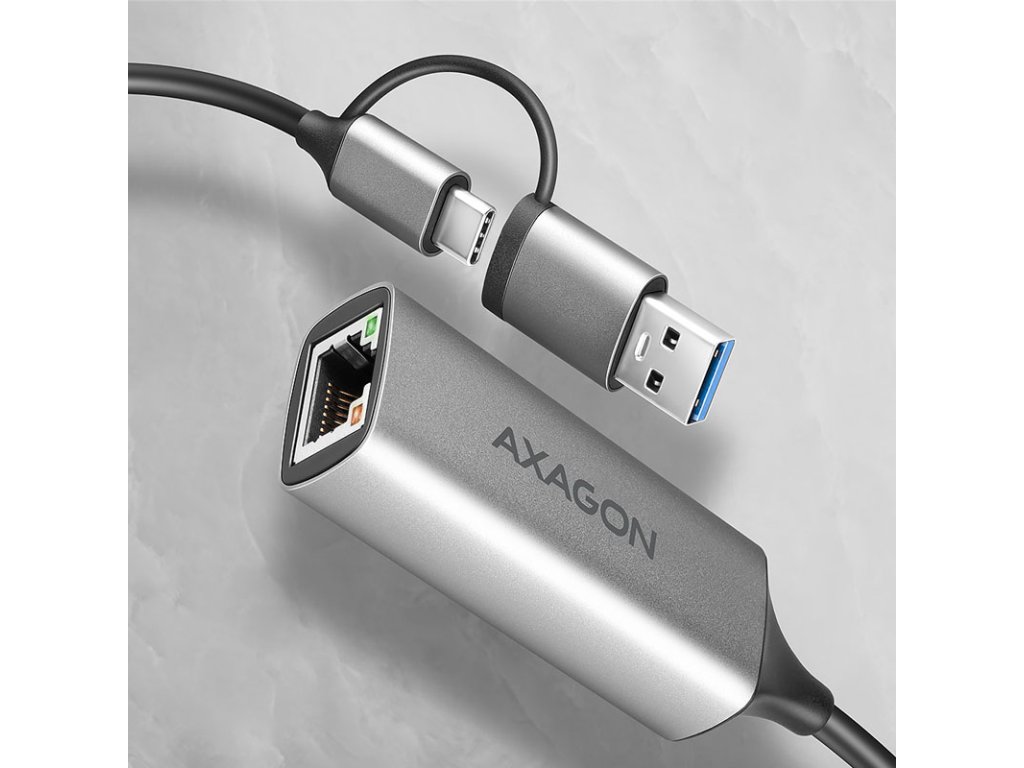 AXAGON ADE-TXCA Gigabitový ethernetový adaptér, USB-C + USB-A - titánovo šedý