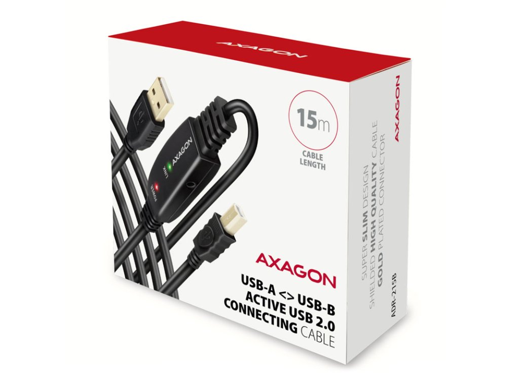 AXAGON ADR-215B aktívny pripojovací kábel USB 2.0, USB-A na USB-B - 15 m
