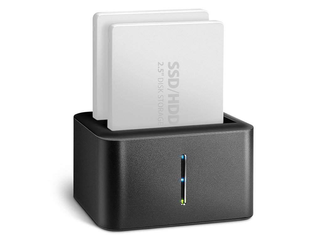SAXAGON ADSA-D25 USB 3.2 Gen 1 - 2x SATA 6G 2,5" SSD/HDD CLONE DUAL MINI Dock môžete ľahko pripojiť svoje 2,5-palcové SSD a HDD kpoužívanie mimo skrinky počítača.Dokovacia stanica je pripojená pomocou rýchlehoUSB 3.0 a napájaný prostredníctvom sieťovej zástrčky. To je možné,dva 2,5-palcové disky súčasne na pripojenie.