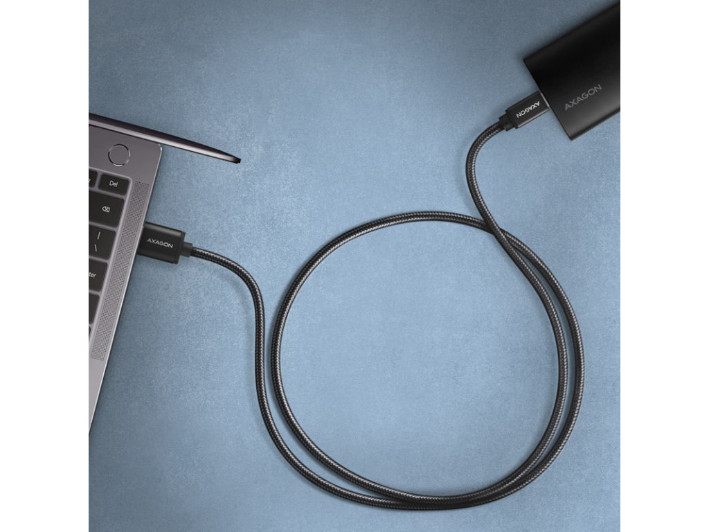 AXAGON ponúka rýchly prenos dát a súčasné nabíjanie notebookov, mobilných telefónov a tabletov pomocou tohto kábla USB-C na USB-A. Podporuje prenos dát rýchlosťou až 5 Gbit/s a nabíjanie s nabíjacím prúdom až 3 A.Vďaka vynikajúcej kvalite vyhotovenia je tento kábel navrhnutý tak, aby vydržal. Poniklované zástrčky a pozlátené kontakty zabezpečujú rýchle prenosy. Nylonové opletenie maximalizuje odolnosť pri zachovaní flexibility.