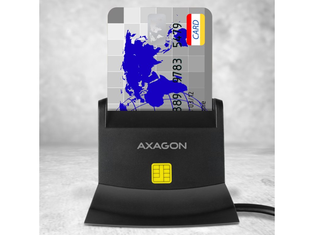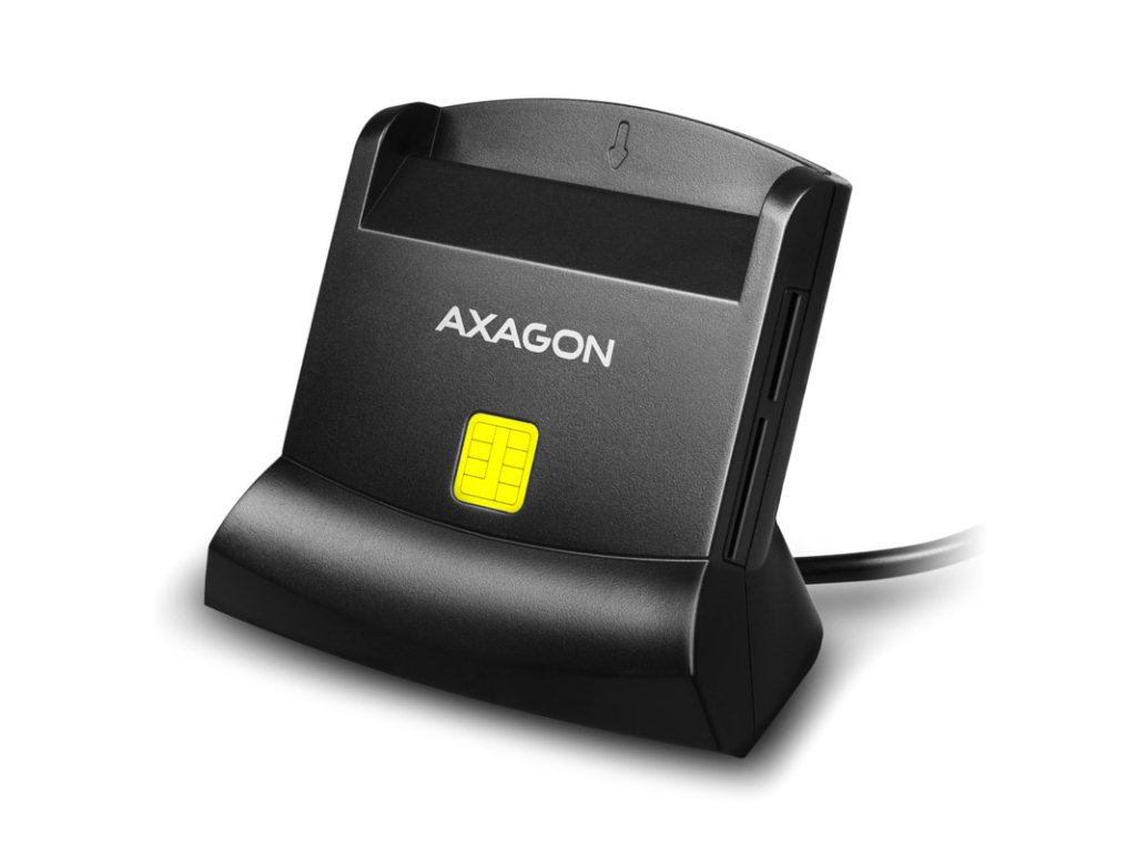 Čítačka karietCRE-SM2 z adresyAXAGON číta karty SD a microSD prostredníctvom dvoch samostatných slotov. Pripojenie k počítaču alebo notebooku sa uskutočňuje prostredníctvom rozhrania USB podľa štandardu 2.0 s maximálnou rýchlosťou 480 MBit/s. Keďže je možné používať dve karty súčasne, údaje sa môžu prenášať z jednej karty na druhú. To isté platí aj pre slot SIM, v ktorom možno čítať pamäťové karty mobilných zariadení, napríklad na vytvorenie zálohy kontaktných údajov. Ďalším výrazným prvkom na prednej strane je čítačka kariet pre čipové karty a elektronické identifikačné karty, ako sú občianske preukazy alebo zdravotné karty.Technické údaje: