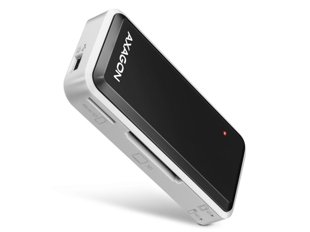 SExterná mini čítačka kariet AXAGON CRE-X1 môžete systém rozšíriť o päť ďalších slotov pre pamäťové karty. Môžetepo jednej pamäťovej karte SD, micro SD, CF, MS a XD v čítačke kariet.