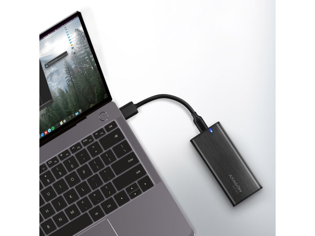 Toto externé puzdro zAXAGON je ideálny pre všetky SSD disky M.2 SATA. Na spoľahlivé pripojenie ku koncovému zariadeniu sa používa rozhranie USB-C. Na pripojenie sa dodáva 20 cm kábel USB-C na USB-A.Kryt je vyrobený z hliníka, a tak zabezpečuje nízku tvorbu tepla s dodatočnými teplovodivými podložkami inštalovanými vo vnútri. Pripojenie USB-C umožňuje prenos dát rýchlosťou až 10 Gbit/s.