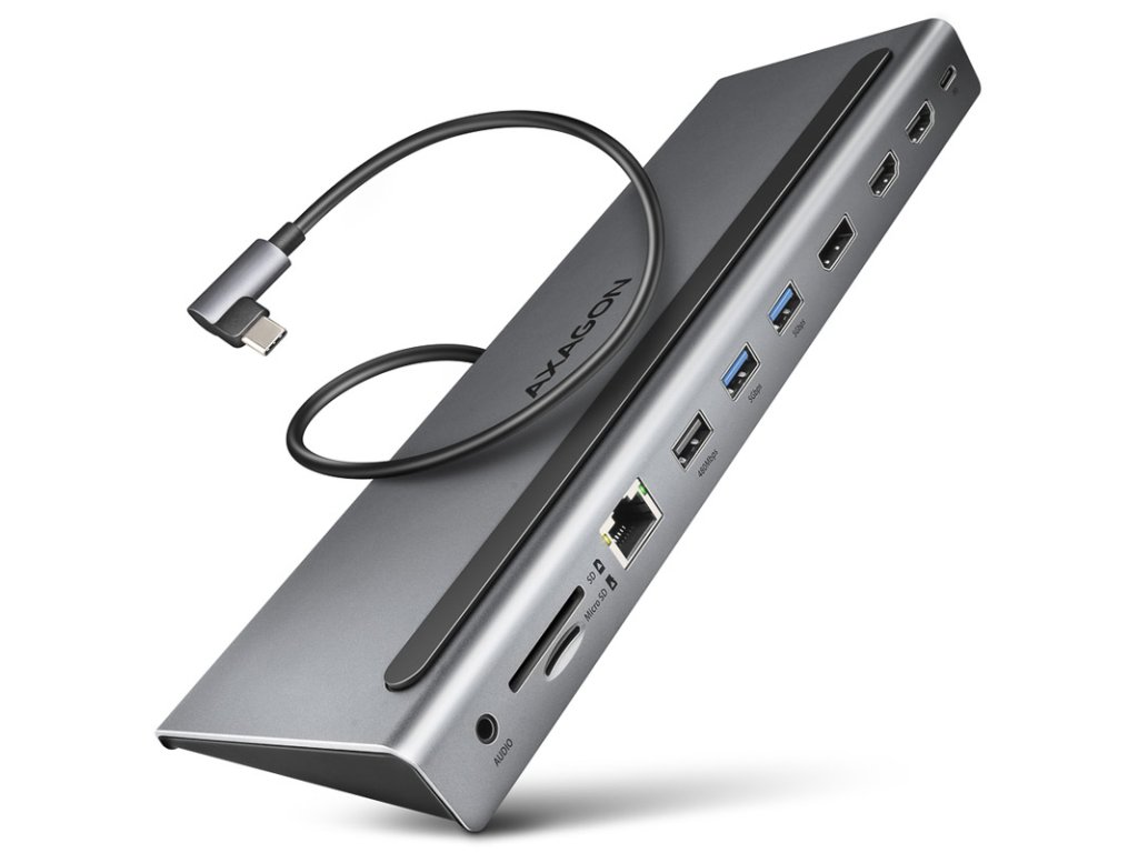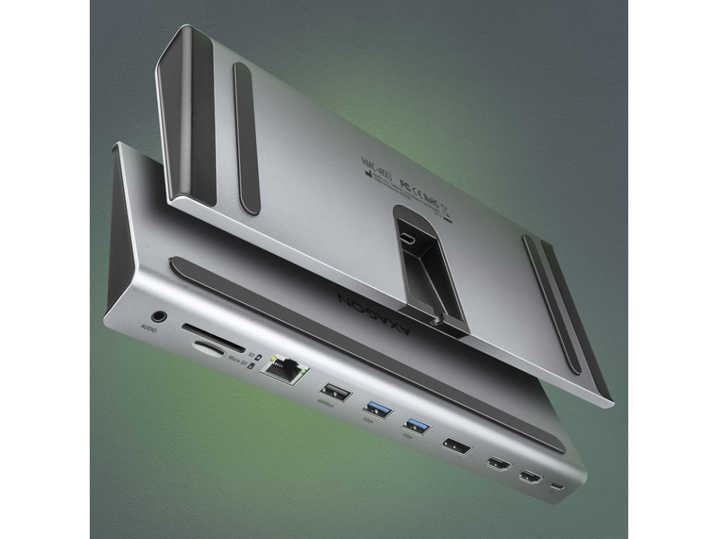 AXAGON HMC-4KX3 USB 3.0 hub, MiniDP + 2x HDMI, LAN, PD, 3x USB-A, čítačka kariet SD, audio