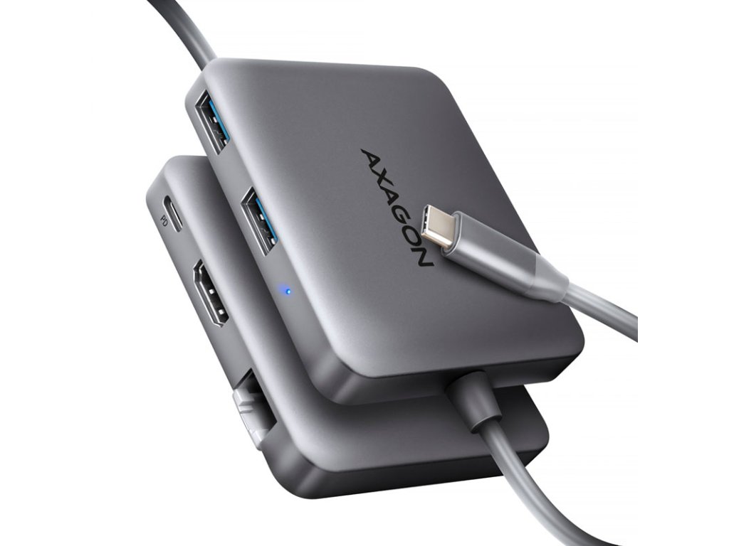 AXAGON HMC-5HL 2x USB-A, HDMI, LAN, USB 3.2 Gen 1 hub, PD 100W - sivá