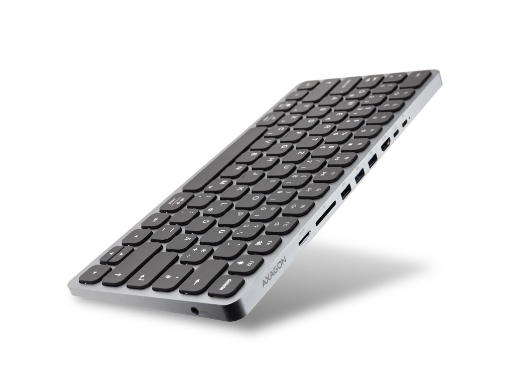 AXAGON HMC-KB Klávesnica USB-C, microSD/SD, 3x USB-A 3.0, HDMI 4K/60Hz, PD 100W, Audio - DE Layout