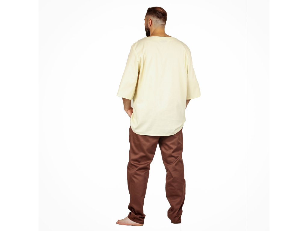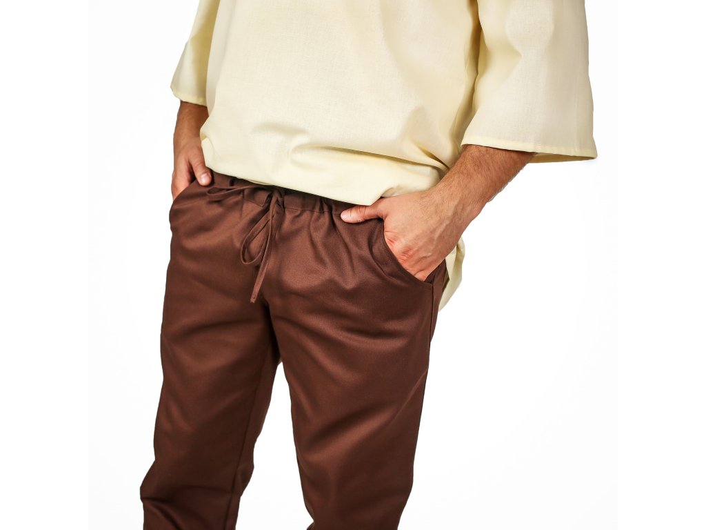 Jednoduché hnědé kalhoty vám poslouží jako perfektní součást téměř každého kostýmu. Jsou vyrobeny z kvalitní bavlny a díky volnému střihu se v nich budete cítit pohodlně i po celodenní práci na poli nebo obraně středověkého hradiště. Navíc mají praktické kapsy, do kterých můžete schovat drobné předměty nebo mince. Ale pozor na kapsáře! Díky jejich dobovému vzhledu je můžete využít pro různé příležitosti. Uděláte v nich dojem na dřevárně, historickém jarmarku nebo fantasy larpu. Můžete si je také pořídit ve stylové černé barvě. Kalhoty mají sice v pase stáhnete šňůrkou, ale pro stylovější vzhled můžete kostým vylepšit některým z našich kožených opasků. Pořiďte si ke kalhotám i bavlněnou fantasy košili.Diskusia