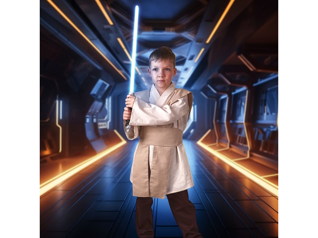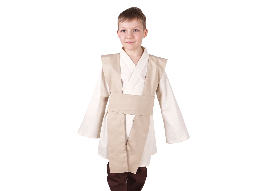 Roztomilý dětský kostým pro malé rytíře Jedi, nebo nadějné padawany tohoto řádu. Stejnokroj ochránců míru ve světě Hvězdných válek. Stylový kostým Jedi je vhodný na tábor, maškarní ples, Halloween nebo k jakémukoli jinému dobrodružství, které potřebuje zásah světlé strany Síly. Originální kostým jsme pro vás vytvořili v naší dílně podle předlohy z filmů Star Wars. Je vyrobený ze 100% bavlny prvotřídní kvality. Materiál je pohodlný a prodyšný a mladí hrdinové se v něm budou vždy cítit příjemně. Kostým se skládá z bavlněné tuniky na zavazování, tabardu v podobě bavlněného pásu přes ramena a látkového opasku, který se označuje jako sash nebo obi. Tabard je k ramenům připevněn plastovými cvočky, aby jej malý Jedi během svých dobrodružství neztratil. K vytvoření dokonalého dojmu doporučujeme kostým doplnit dětským pláštěm mistrů Jedi a hnědými kalhotami z naší nabídky. A žádnému ochránci řádu by neměl chybět jeho vlastní světelný meč.Diskusia