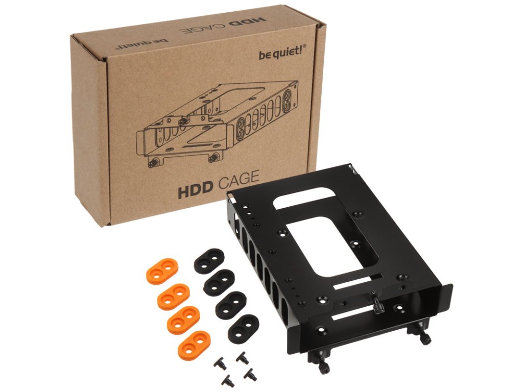 Sbuďte ticho! HDD klietka takmer všetkybuďte ticho!-Skriňa môže byť vybavená prídavnou klietkou na HDD. Do jednej klietky možno umiestniť jeden 3,5-palcový a dva 2,5-palcové disky. VďakaOddeľovacie gumy v čiernej a oranžovej farbe účinne zabraňuje prenosu vibrácií.Technické údaje: