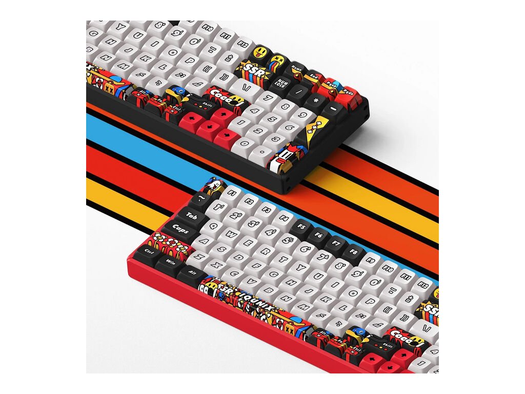StránkaIQUNIX F97 Graffiti Blaze je klávesnica, ktorá vyniká najmä svojím dizajnom s klávesmi v komiksovom štýle. Je stabilná vďaka hliníkovému puzdru a máRozloženie v plnej veľkostikde sú teda takmer všetky tlačidlá.