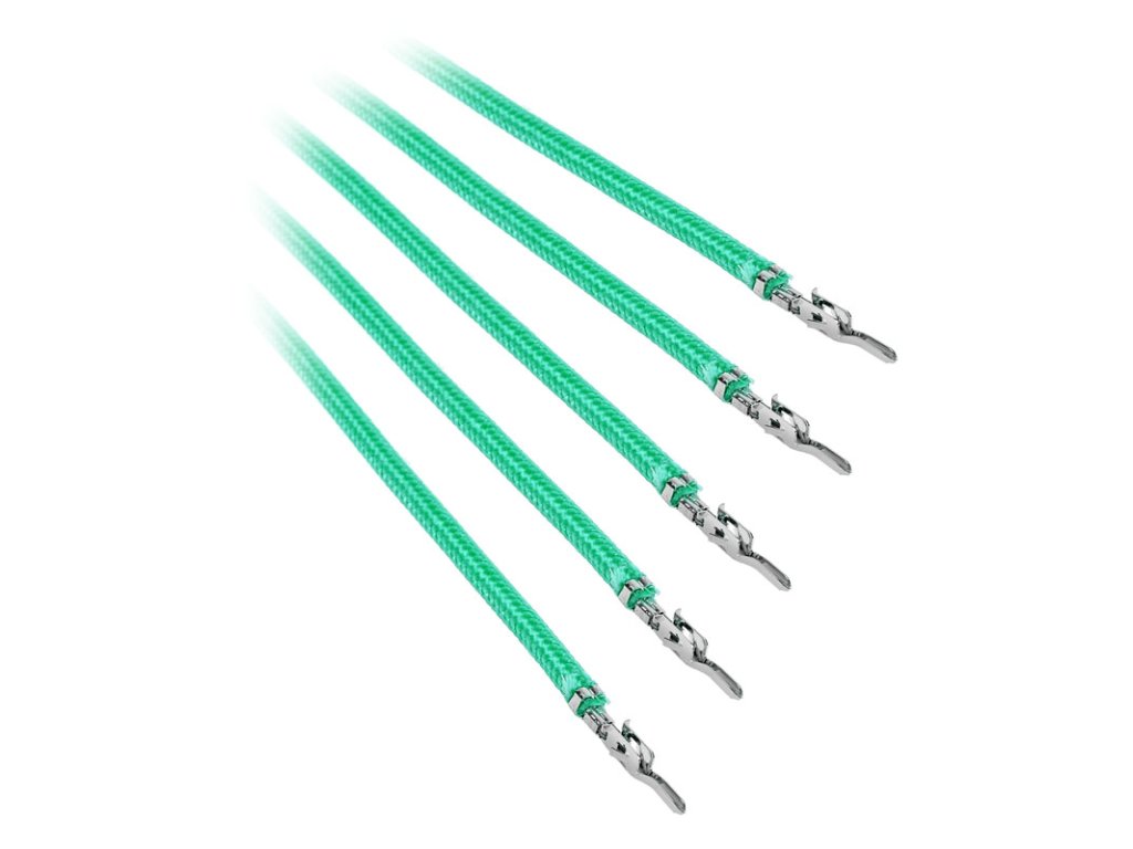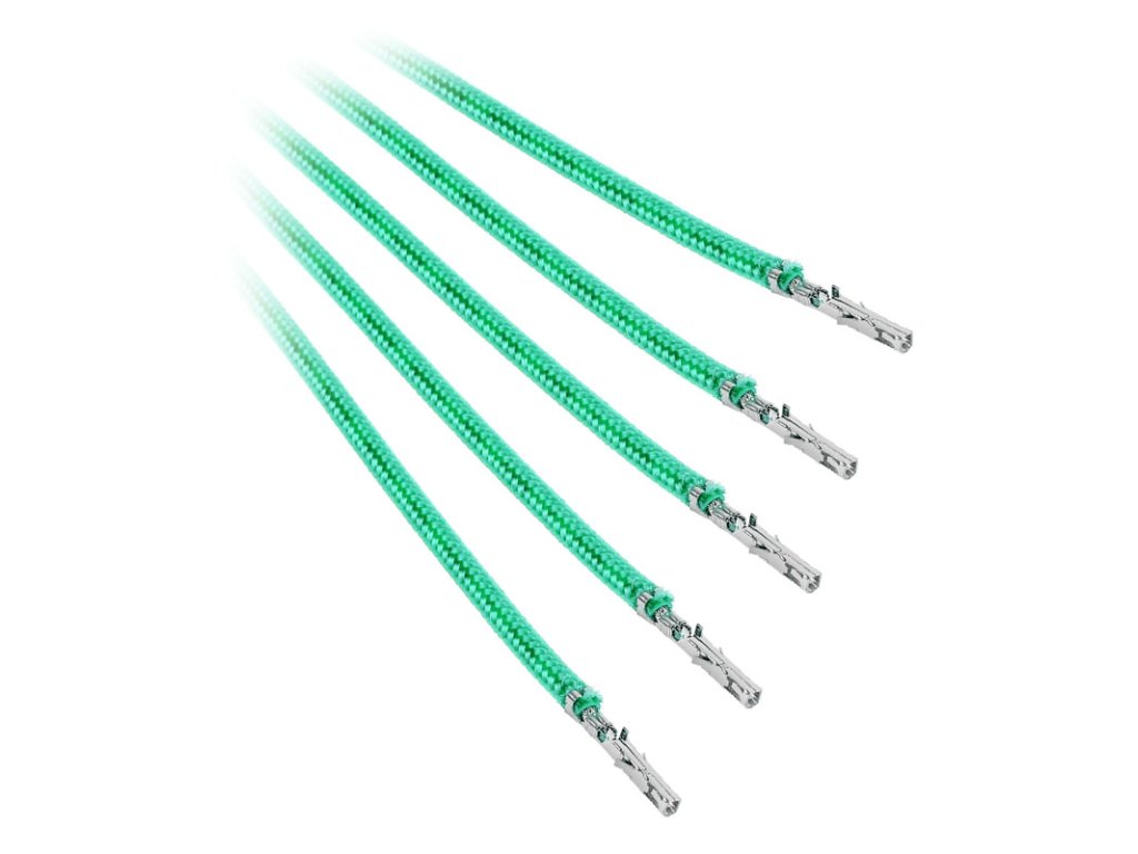 Poznámka: Obrázok 3 ukazuje príklad všetkých dostupných variantov káblov BitFenix, ale táto sada obsahuje len päť káblov v zelenej farbe. Obrázok 4 ukazuje príklad, ako vyzerajú objímky v konektore (nie je súčasťou balenia).