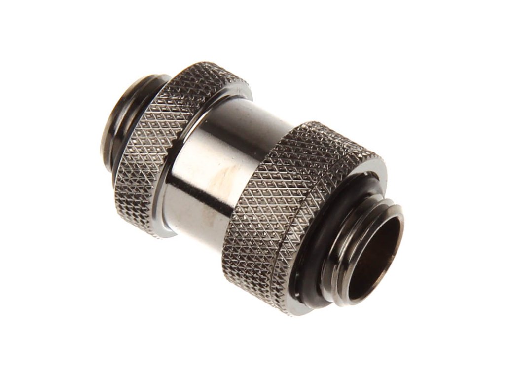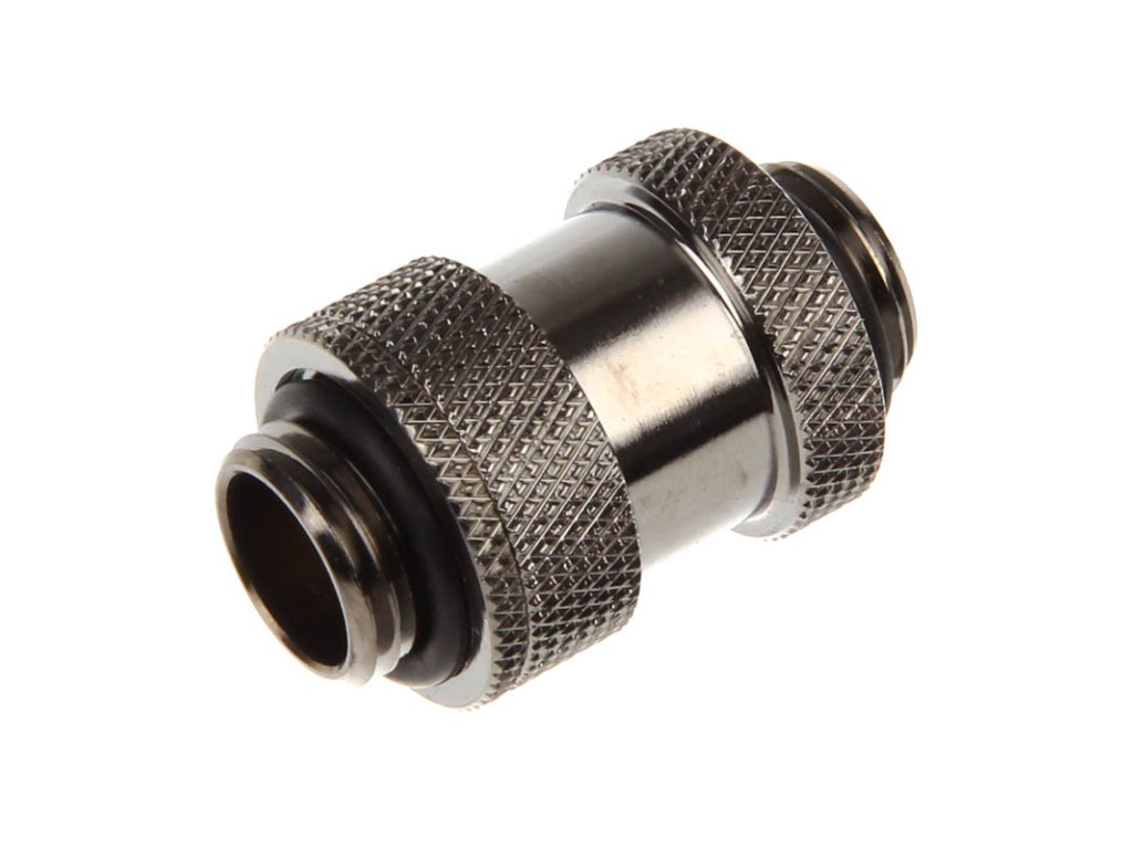 Ide o lesklý čierny poniklovaný priamy adaptér s dvoma vonkajšími závitmi G1/4". Zvláštnosť: dĺžku adaptéra možno flexibilne nastaviť v rozmedzí 22 až 31 mm (merané bez závitu). Na tento účel stačí uvoľniť jednu prevlečnú maticu, vytiahnuť jednu stranu podľa potreby a potom ju opäť upevniť prevlečnou maticou.