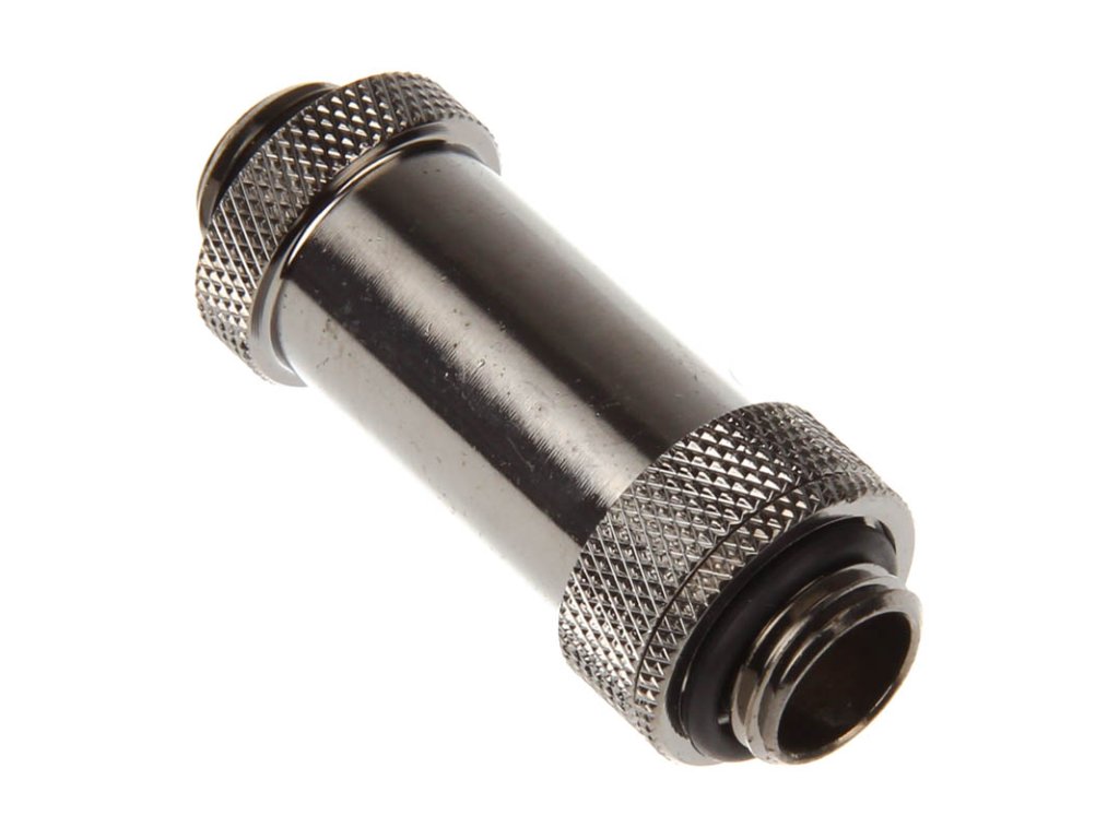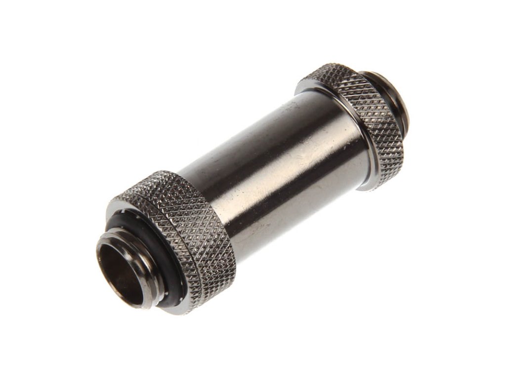 Ide o lesklý čierny poniklovaný priamy adaptér s dvoma vonkajšími závitmi G1/4". Zvláštnosť: dĺžku adaptéra možno flexibilne nastaviť v rozmedzí 41 až 69 mm (merané bez závitu). Na tento účel jednoducho uvoľnite jednu prevlečnú maticu, vytiahnite jednu stranu podľa potreby a potom ju opäť zaistite prevlečnou maticou.