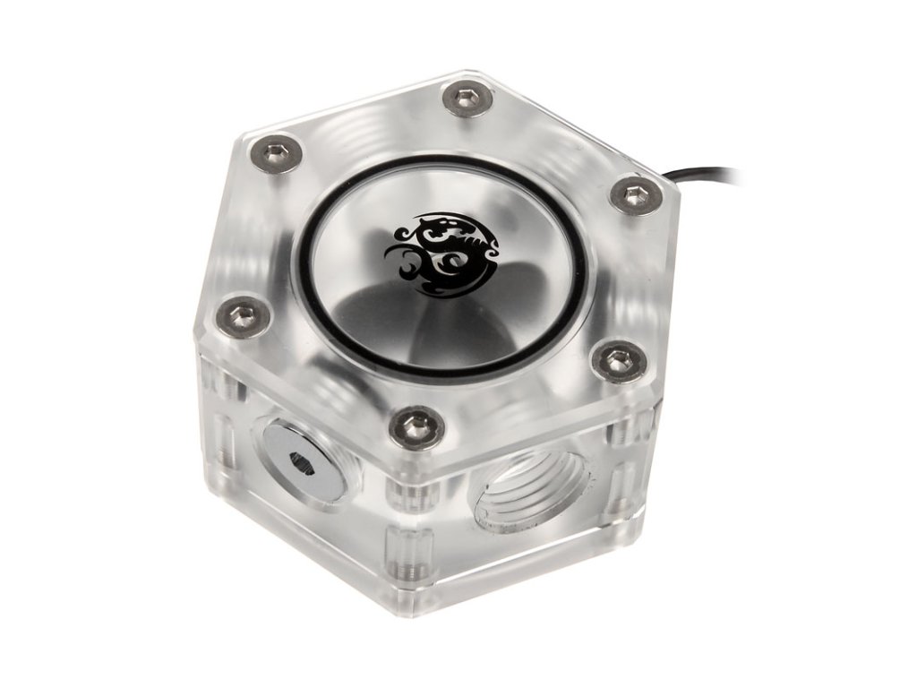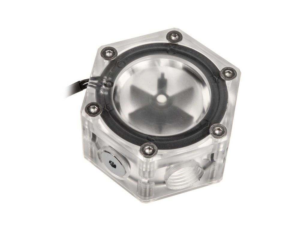 SŠesťhranný indikátor prietoku Bitspower ješesťhranný indikátor prietoku z adresypriehľadný akryl sšesť vnútorných závitov G1/4 palca. Chladiaca kvapalina prúdi cez indikátor prietoku a poháňajedno čierne lopatkové koleso že sje vybavená keramickým ložiskom. Všetkých šesť strán môže byť pripojených k systému vodného chladenia.Súčasťou balenia sú štyri uzávery pre nepoužívané pripojenia. Bitspowerzároveň dodáva aj zodpovedajúci imbusový kľúč.