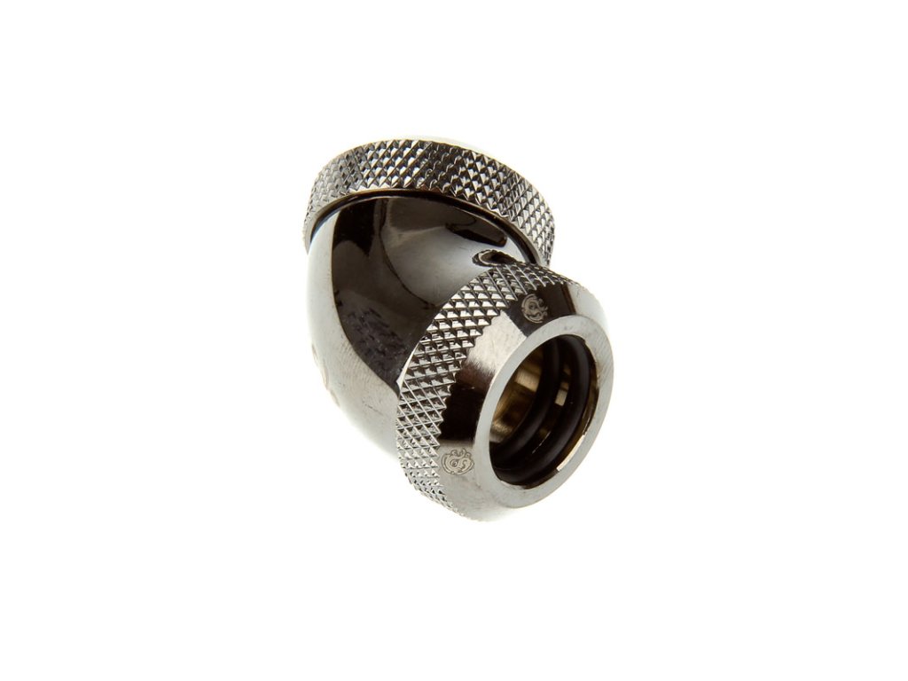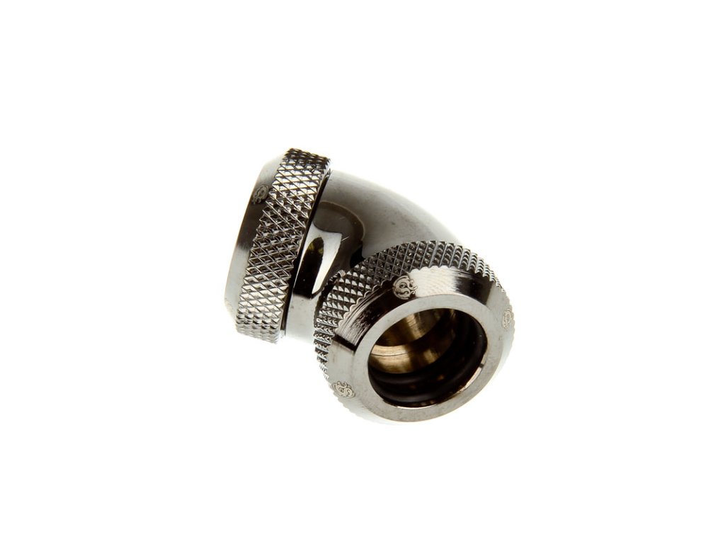 Ide o lesklý čierny poniklovaný adaptér na predĺženie prípojok v systémoch vodného chladenia. Adaptér je spojka na spojenie dvoch (akrylových) úsekov hadíc, ktoré neprebiehajú v priamej línii. Dva gumové krúžky na každej strane zabezpečujú tesnenie.