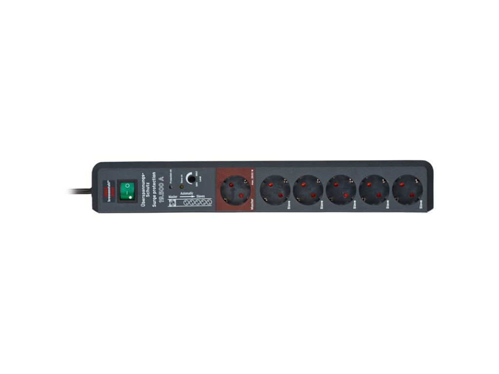 StránkaŠesťcestná zásuvková lišta Secure-Tec z adresyBrennenstuhl chráni cenné zariadenia pred prepätím napríklad v prípade búrky alebo úderu blesku. Kontrolka funkcie poskytuje vizuálnu spätnú väzbu o stave prepäťovej ochrany a podriadenej funkcie. S praktickýmFunkcia Master-Slave jedným hlavným zariadením (master) možno zapínať a vypínať až päť zariadení. Prostredníctvom podriadených konektorov sa pripájajú napríklad monitory, tlačiarne a iné zariadenia. Hlavné zariadenie pripojené cez hlavnú zástrčku, napríklad počítač, potom ovláda až päť zariadení jedným stlačením tlačidla.Prehľad funkcií viacnásobnej zásuvky Brennenstuhl Secure-Tec s prepäťovou ochranou: