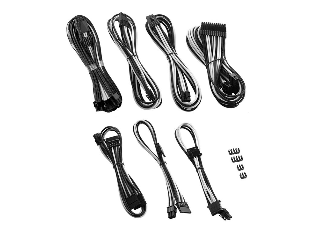Okrem 16-pinového kábla 12VHPWR na 3x 8 PCIe s vodičmi 16AWG súprava obsahuje káble pre napájanie základnej dosky, zariadenia SATA a pripojenia Molex. StránkaSúprava káblov CableMod C-Series Pro ModMesh 12VHPWR sa spolieha na vysokokvalitné puzdrá z materiálu ModMesh. Niektoré káble sú vybavené predinštalovanými uzavretými káblovými hrebeňmi. Ďalšie káblové hrebene a káblový kryt sú súčasťou súpravy.