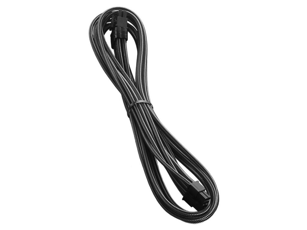 Tento kábel je kompletne oplášťovaný bez nevzhľadných teplom zmršťovaných hadičiek. 8-pinový kábel PCIe je vybavenýNapájacie zdroje Corsair série AXi, HXi a RM so žltým štítkom kompatibilný a dosahuje maximálnu bezpečnosť pri pripájaní napájacej jednotky k iným hardvérovým komponentom.Každý kábel bol jednotlivo pokrytý nepriehľadným a pevným opleteným plášťom z vysokokvalitného a intenzívne sfarbenéhoMateriál ModMesh rukávy. Kvalita opláštenia, a teda aj vzhľad sú vynikajúce. Samotné spoje sú vyhotovené v čiernej farbe, čím sa dosiahne cool štýl.