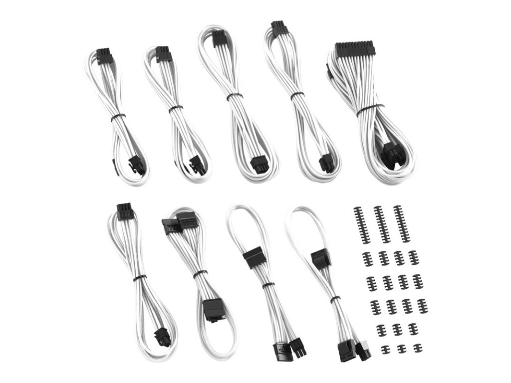 Ponúkaná súprava káblov jeSada celkovo deviatich káblovktorých jednotlivé jadrá sa striedajú sbiela Tkanina ModFlex má rukávy. Súprava je kompatibilná sNapájacie zdroje Corsair série RMi a RMx a káblové zväzky presne zapadajú do zásuviek na napájacej jednotke. Presný počet káblov a prípojok, ako aj ich dĺžku nájdete v technických údajoch.