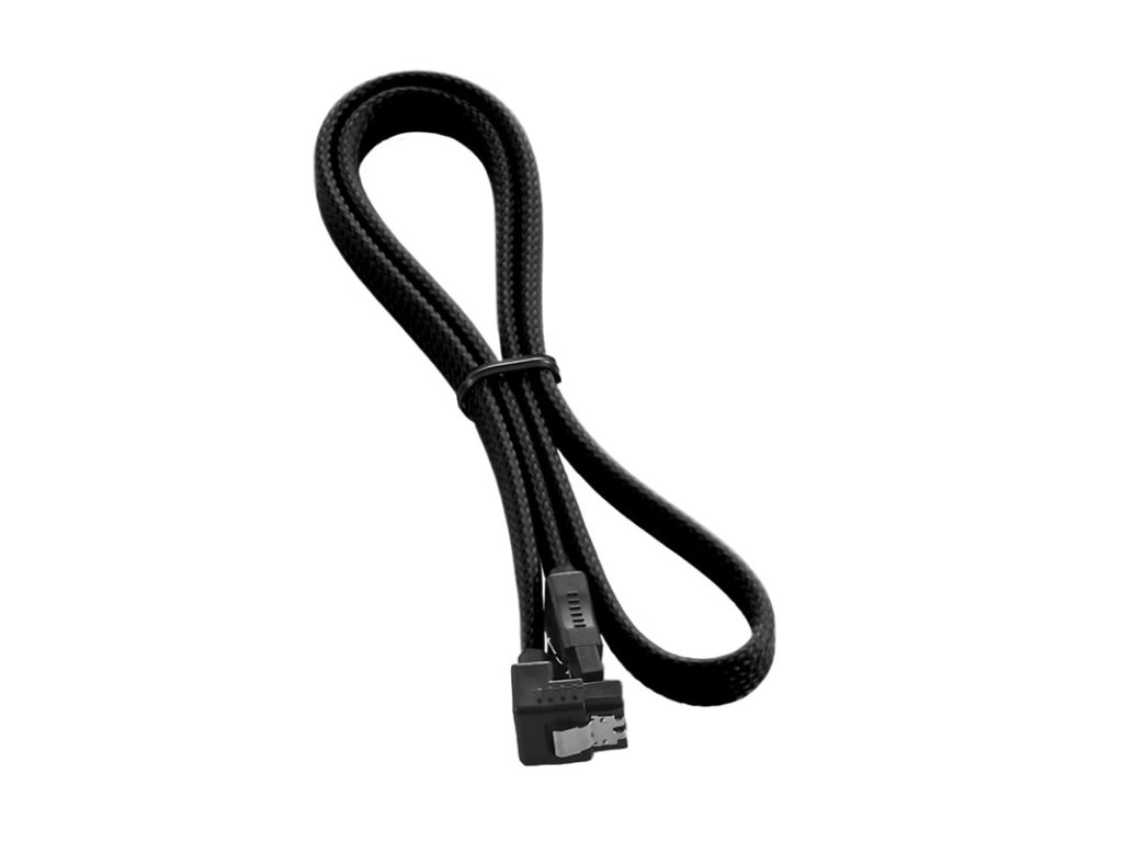 Sú todĺžka 60 cm a plochéKábel SATA 3.0 v žiarivo čiernej farbe s jedným uhlovým a jedným rovným konektorom.