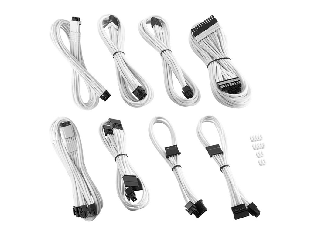 Okrem 16-pinového kábla na 16-pinový kábel 12VHPWR a 16-pinového kábla 12VHPWR na 3x 8-PCIe s vodičmi 16AWG súprava obsahuje káble pre napájanie základnej dosky, zariadenia SATA a pripojenia Molex. StránkaSúprava káblov CableMod RT-Series Pro ModMesh Dual sa spolieha na vysokokvalitné puzdrá z materiálu ModMesh. Niektoré káble sú vybavené predinštalovanými uzavretými káblovými hrebeňmi. Ďalšie káblové hrebene a káblový kryt sú súčasťou súpravy.