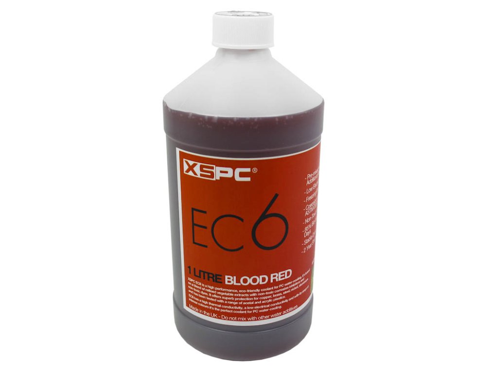 XSPC je výrobca so sídlom v Anglicku a je tam už veľmi dobre známy a obľúbený. Špecialisti na chladenie sa vyznačujú vynikajúco vyrobenými a inovatívnymi výrobkami. Vyberajú sa len tie najlepšie materiály a veľká pozornosť sa venuje vynikajúcemu vzhľadu. Napriek týmto vysokým štandardom sa XSPC dokáže blysnúť naozaj dobrou cenou a stať sa tak skutočným konkurentom zavedených značiek.EC6 je vysoko výkonná, ekologická chladiaca kvapalina na použitie vo vodných chladiacich systémoch. Je založená na zmesi rafinovaných rastlinných extraktov a netoxických inhibítorov korózie a netoxických farbív. Poskytuje vynikajúcu ochranu medi, mosadze, ocele, niklu, hliníka a bola testovaná aj s celým radom acetálových a akrylových plastov.