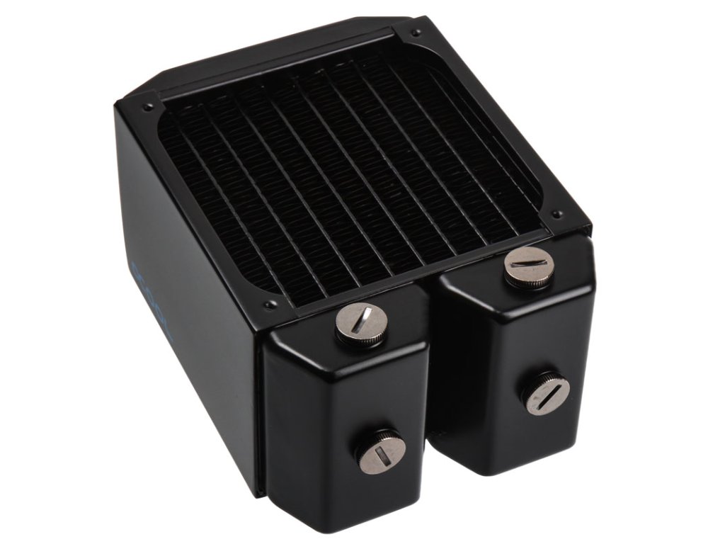 Tento masívny chladič, ktorý je nielen 86 mm hrubý, ale aj 160 mm dlhý, má neuveriteľne veľkú chladiacu plochu. Rozstup rebier bol zvolený tak, aby sa dosiahlo optimálne chladenie aj pri pomalých ventilátoroch. Čím vyššie sú však otáčky, tým lepší je chladiaci výkon v porovnaní s tenšou konkurenciou. Chladiaci výkon s jedným ventilátorom pri 1200 otáčkach za minútu je približne rovnako dobrý ako pri 60 mm radiátore s dvoma ventilátormi.