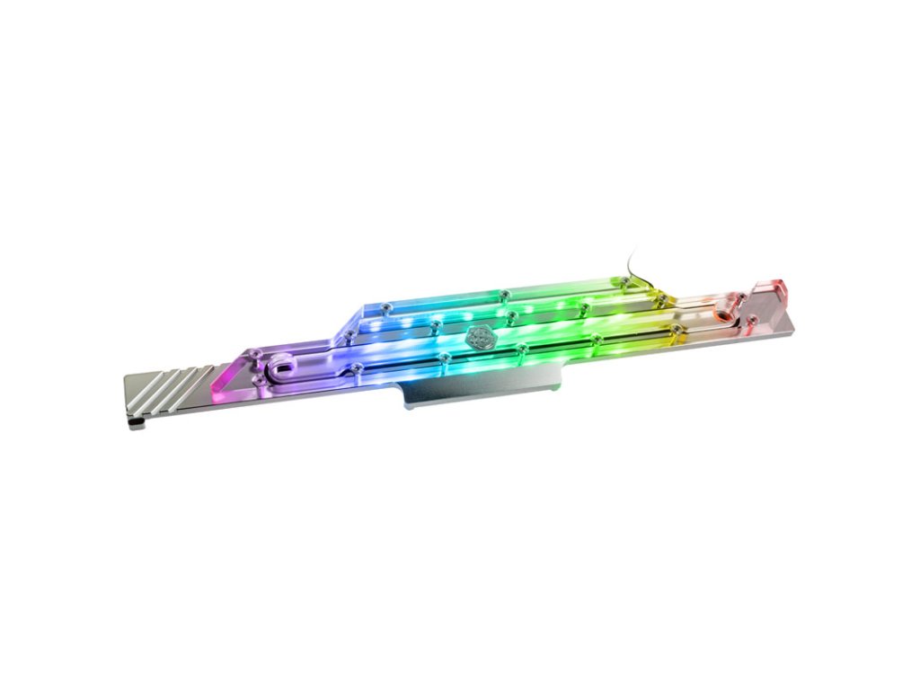 StránkaMosfetový chladič pre ASUS ROG Dominus Extreme je vyrobené z vysoko čistej medi a boldodatočne poniklované. To zaručuje vysokú tepelnú vodivosť. Výsledkom je, že meniče napätia zostávajú vždy v zelenom teplotnom rozsahu, a to aj pri pretaktovaní. StránkaVeko je vyrobené z priehľadného akrylového skla a umožňuje pohľad na prúdiacu chladiacu kvapalinu. Je integrovaný do vodného okruhu prostredníctvom dvoch závitov G1/4 palca.Vhodné osvetlenie zabezpečuje integrovanýadresovateľné osvetlenie RGB. K základnej doske je pripojený cez 3-pinový konektor RGB (5VDG, 5V) a možno ho synchronizovať so zvyškom zostavy. Osvetlenie je kompatibilné s ASUS AURA Sync, GIGABYTE RGB Fusion, MSI Mystic Light Sync, ASRock Polychrome a Razer Chroma.