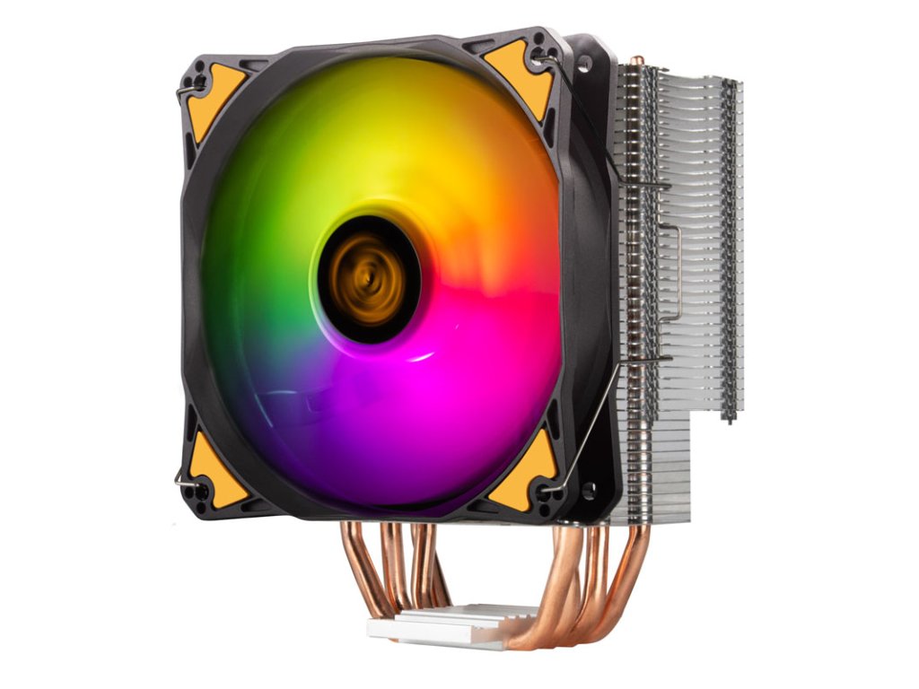 Stránkaštyri 6 mm silné medené tepelné trubice sú nalisované priamo na procesor, a tak absorbujú teplo priamo z procesora a potom ho prenášajú priamo na nespočetné hliníkové rebrá. Tento proces zabezpečuje veľmi dobré chladenie pomocou bežnej tepelnej pasty.Už nainštalované120 mm ventilátor poskytuje silný prúd vzduchu až do117,67 m³/h jemné hliníkové rebrá zabezpečujú rýchly a účinný odvod tepla. Napriek tomu je ventilátor tichý a pracuje pri maximálnych otáčkach.34,4 dB(A)keď je medzi300 a 2 200 otáčok za minútu sa otáča.Gumový oddeľovač pomáha minimalizovať vibrácie, ktoré by inak boli vnímané ako hlasnejšie.