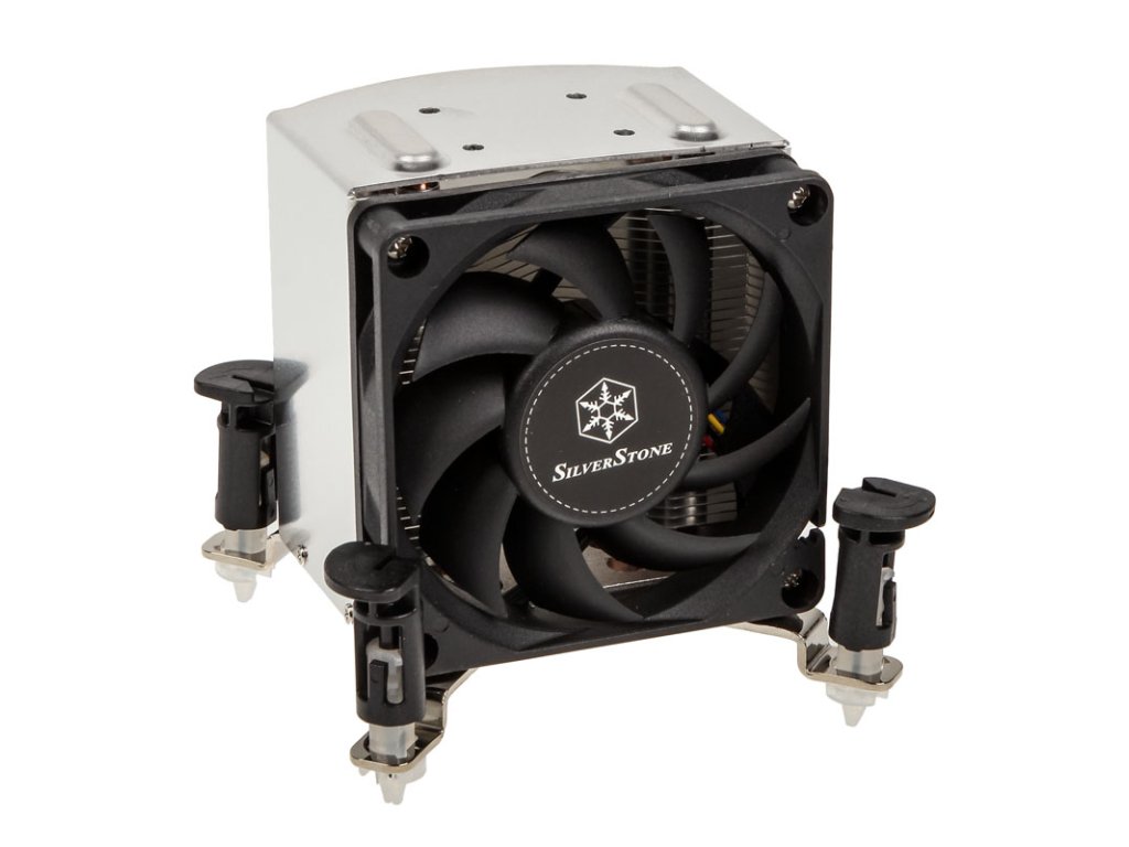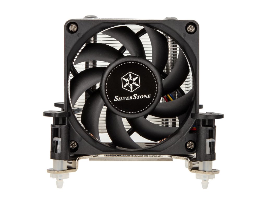 SilverStone SST-AR10-115XP je mimoriadne kompaktný vežový chladič s tromi dômyselne usporiadanými tepelnými trubicami s priemerom 6 mm, ktorý je vhodný do 3U rackov alebo skriniek s malým rozmerom. Heatpipes, zasadené do základne, transportujú odpadové teplo do 9,3 cm širokého a 7,9 cm vysokého bloku chladiča. Deväťlopatkový 70 mm ventilátor s puzdrovými ložiskami zabezpečuje slušný prietok vzduchu až 33,11 m³/h pri plnej rýchlosti 4 000 otáčok za minútu a neprodukuje viac ako 39,03 dB(A). Dokáže však pracovať aj veľmi ticho - priškrtený pulzno-šírkovou moduláciou -, keď pohlcuje vzduch s hodnotou len niečo cez 18,07 dB(A) pri iba 500 otáčkach za minútu.