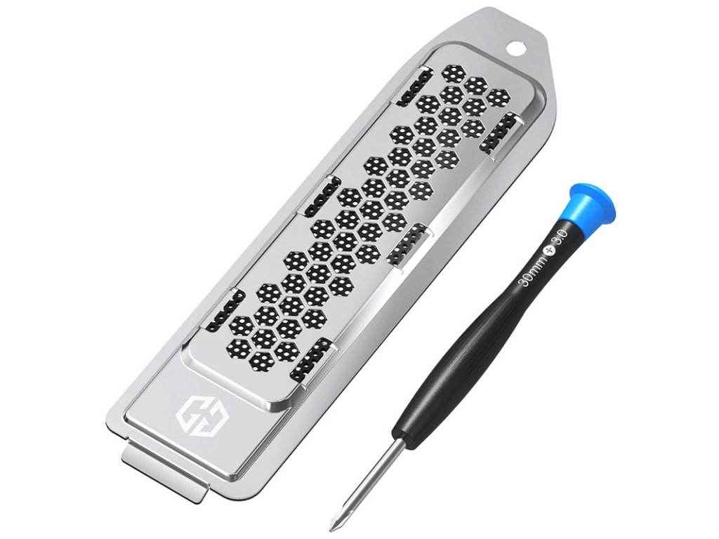 StránkaKryt zabraňuje vnikaniu prachu a nečistôt a možno ich ľahko vybrať na čistenie. StránkaKovový radiátor zaisťuje dobrý rozptyl tepla a udržuje váš M.2 NVMe SSD disk príjemne chladný aj počas dlhších sedení. Tentona jednej strane zabraňuje tepelnému škrteniu atiež predlžuje životnosť vášho drahocenného pamäťového média. Chladič sa dodáva s príslušným skrutkovačom, aby ste mohli ihneď začať s inštaláciou a hraním.
