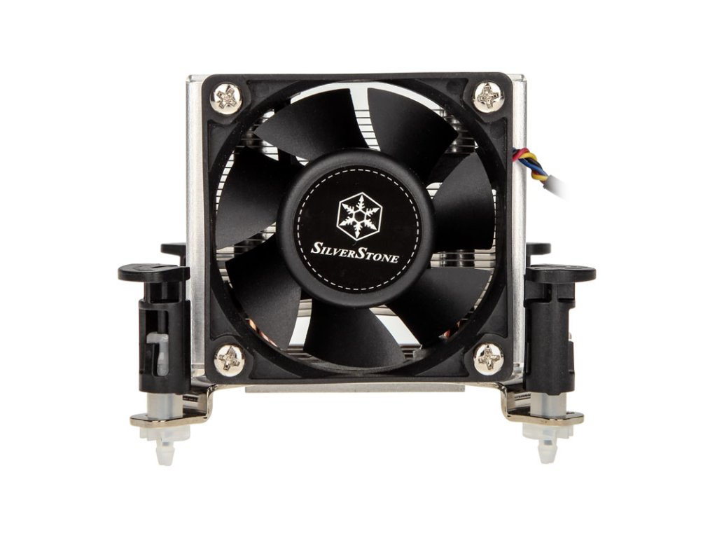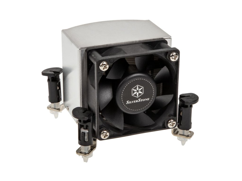 SilverStone SST-AR09-115XP je mimoriadne kompaktný vežový chladič s tromi dômyselne usporiadanými tepelnými trubicami s priemerom 6 mm, ktorý je vhodný do 2U rackov alebo skriniek s malým rozmerom. Heatpipes, zasadené do základne, transportujú odpadové teplo do 9,3 cm širokého a 6,6 cm vysokého bloku chladiča. Sedemlopatkový 60 mm ventilátor s puzdrovými ložiskami zabezpečuje slušný prietok vzduchu až 47,40 m³/h pri plnej rýchlosti 5 000 otáčok za minútu a produkuje maximálne 42,5 dB(A). Dokáže však pracovať aj veľmi ticho - priškrtený pomocou pulzno-šírkovej modulácie - keď pohlcuje vzduch s hodnotou len niečo cez 18,02 dB(A) pri iba 1 200 otáčkach za minútu.