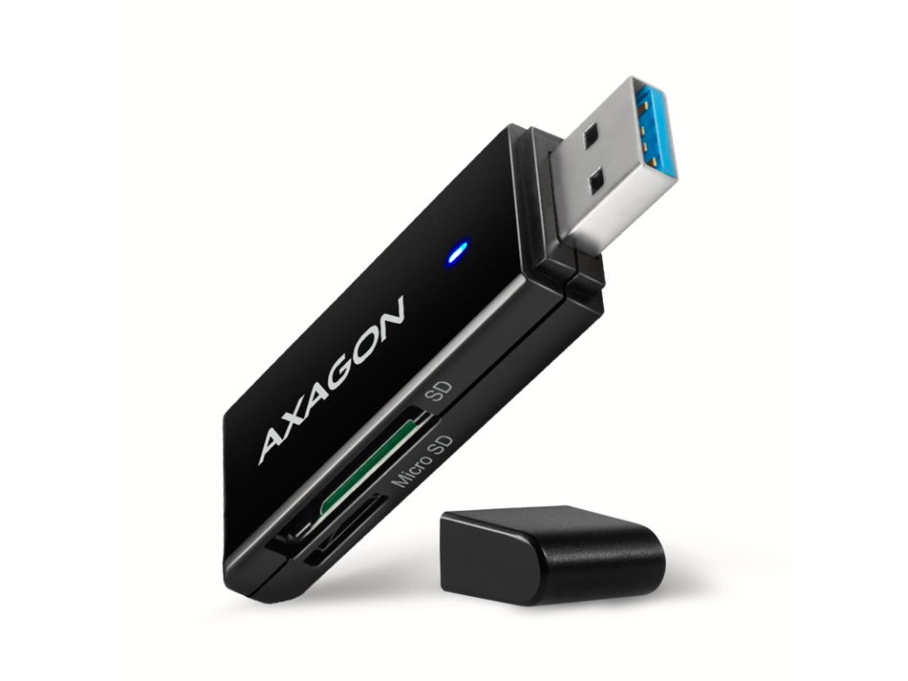 AXAGON umožňuje používať pamäťové karty v oboch slotoch pomocou tohto adaptéra pre karty SD a microSD. Okrem iného umožňuje kopírovanie medzi oboma kartami. Tento adaptér je vhodný pre všetky aktuálne verzie kariet SD vrátane SDXC a microSDXC s kapacitou až 2 TB.Úzka konštrukcia adaptéra nebráni používaniu okolitých slotov USB, a preto je ideálny pre multimediálnych používateľov.