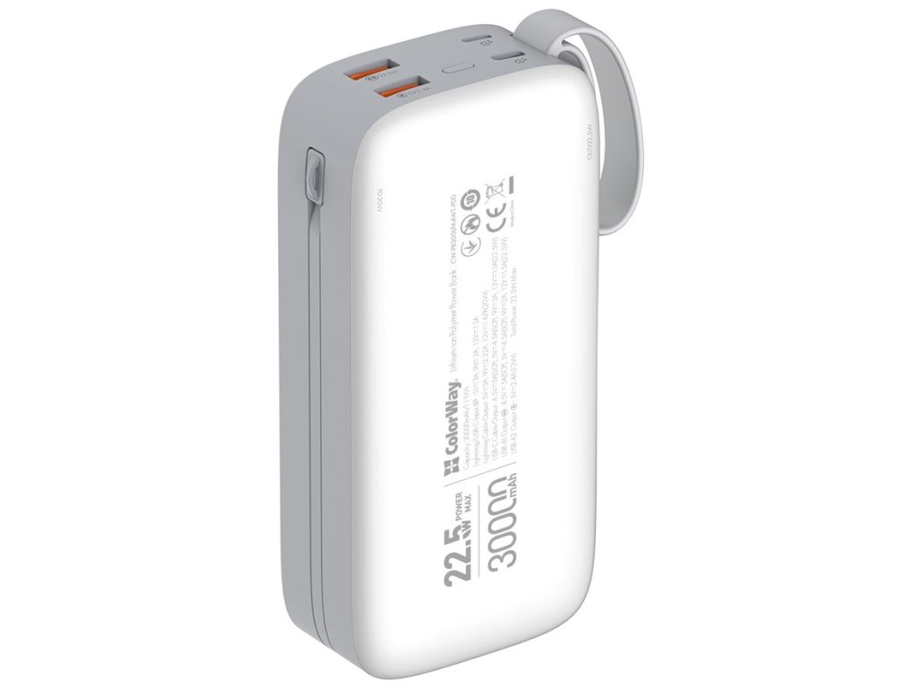 COLORWAY powerbanka/ 30 000mAh/ 1x USB QC3.0/ USB-C/ Lightning/ 22,5W/ Bílá