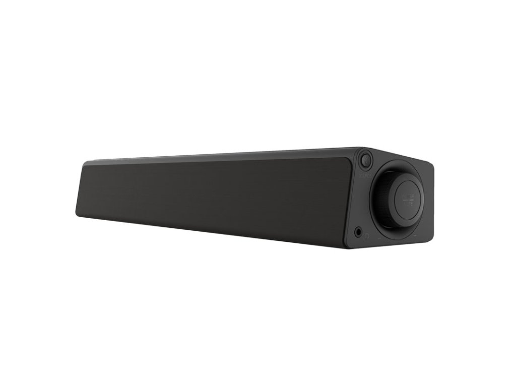 Soundbar pripojíte k počítaču alebo notebooku cez USB-C alebo Bluetooth 5.3. Tlačidlá ovládania hlasitosti a zdroja sú pohodlne umiestnené na boku soundbaru, takže sú ľahko dostupné a ovládateľné.