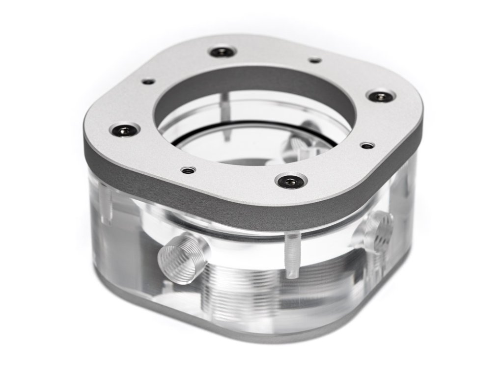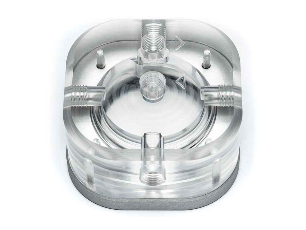 Je vyrobený z akrylového bloku s hliníkovou doskou a jehokanály s optimalizovaným prietokom zabezpečuje, aby systémom vždy prúdilo dostatočné množstvo vody. Dbalo sa aj na to, aby sa zabezpečilo, žečo najnižší protitlak a vaše čerpadlo sa nepoškodí.