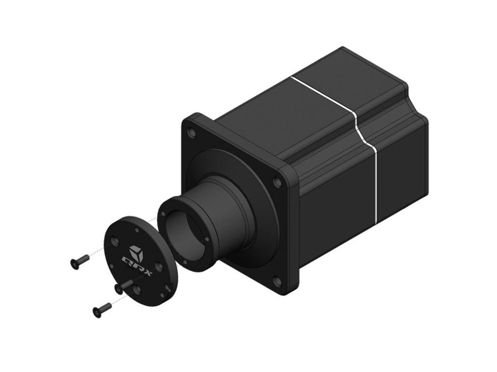 Adaptér QRX Simucube je určený ako náhrada pôvodného pripojenia rozchodu kolies Simucube, ktoré sa musí najprv odstrániť. Následne je možné pripojiť prípojky rozchodu kolies QRX k novému adaptéru.