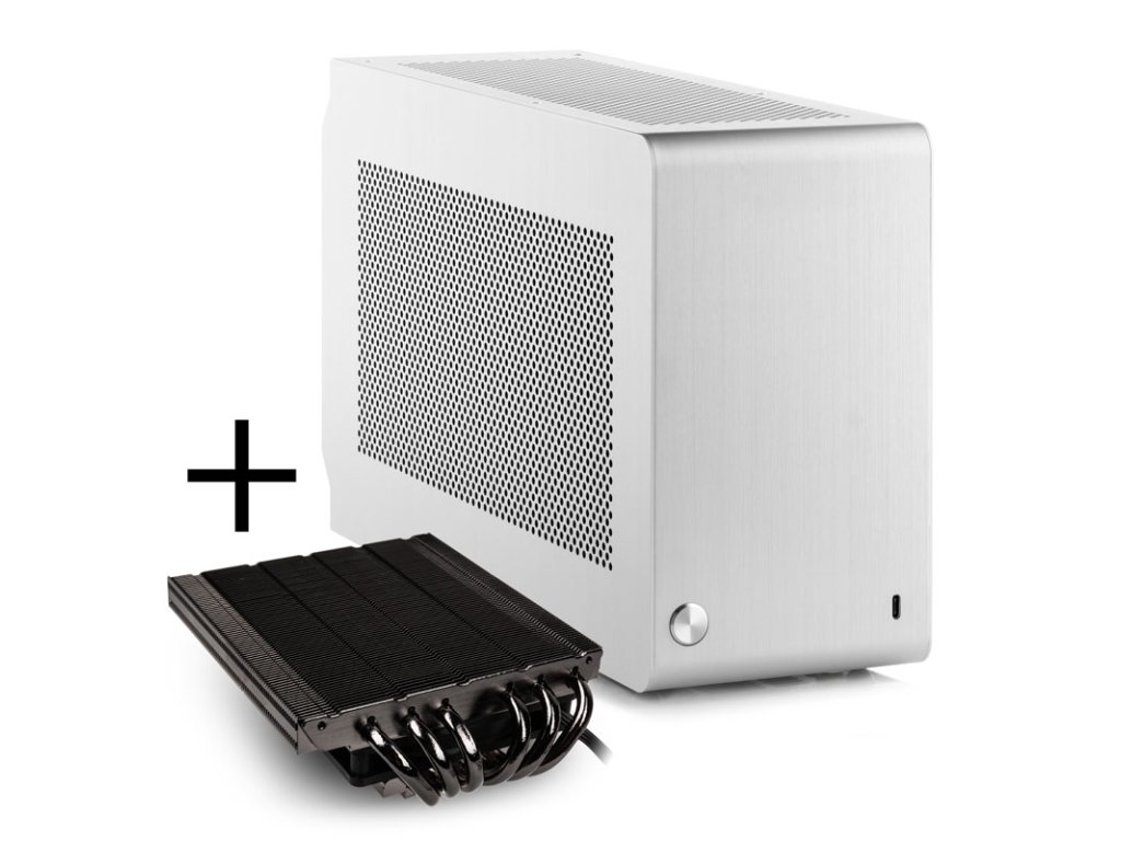 S mimoriadne kompaktnými rozmermiiba 115 x 200 x 317 milimetrov (Š x V x H) miniskrinka DAN Cases A4-SFX V4.1 má objem len 7,25 litra, čo je približne veľkosť krabice od topánok alebo hriankovača. Skutočnosť, že napriek tejto veľkosti do nej možno nainštalovať kompletný herný počítač, sa dosiahla vďaka premyslenej koncepcii a triku: grafická karta je nainštalovaná paralelne zaZákladná doska Mini-ITX v samostatnej komore a takmer každý štvorcový centimeter interiéruDAN Cases A4-SFX V4.1 používať rozumne. Pri vývoji optimálneho chladiča procesora sa Daniel Hansen, nemecký dizajnérPrípady DAN Herná skrinka pre systémy mini-ITX v spolupráci s odborníkmi zo spoločnosti Alpenföhn. Výsledkom bol modelChladič CPU Black Ridge ktorého nízka výška je kompenzovaná vyčnievajúcim povrchom. Spolu s tichým a účinným 92 mm ventilátoromchladič zvláda plný TDP 95 wattov.Prehľad funkcií balíka: