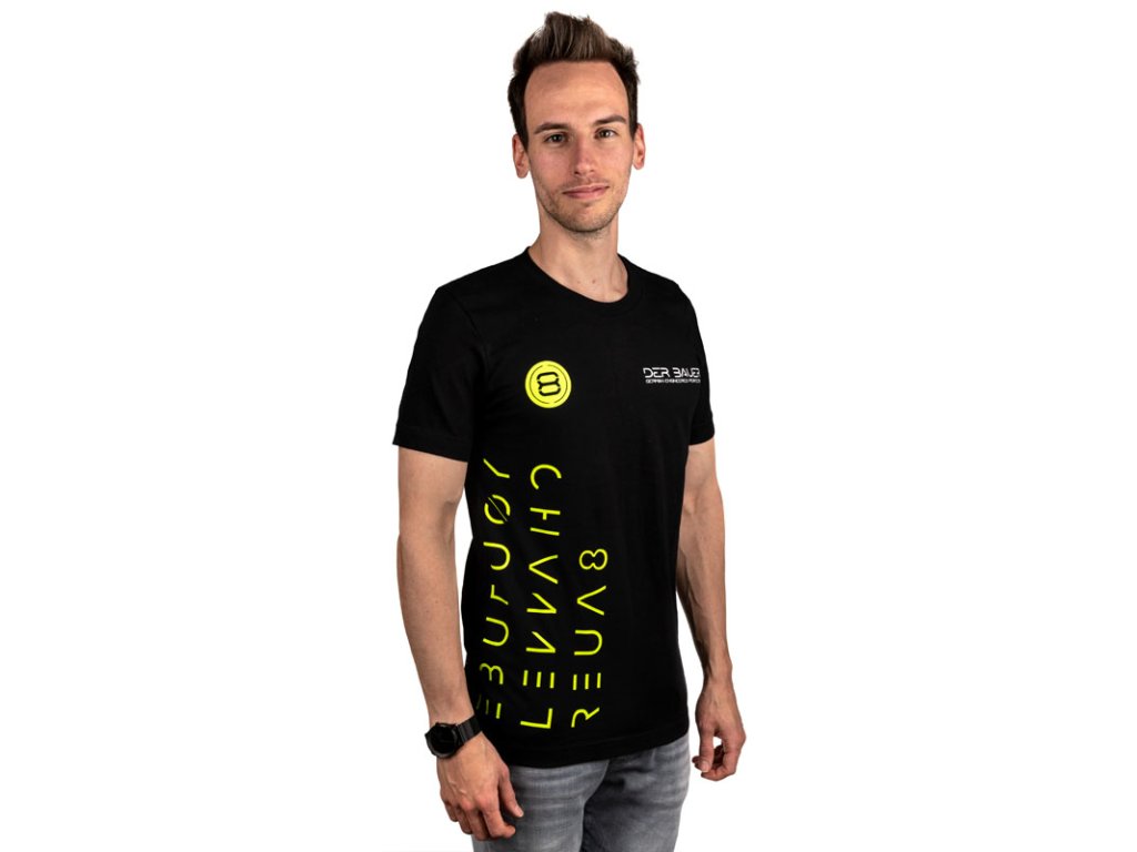 Na prednej strane čierneho trička je žltým písmom napísanéKanál Youtube 8auer a na zadnej strane je žlté logo a dva ďalšie nápisy v bielej farbe. Materiál je 100 % bavlna a tento model sa dodáva vo veľkosti "L".